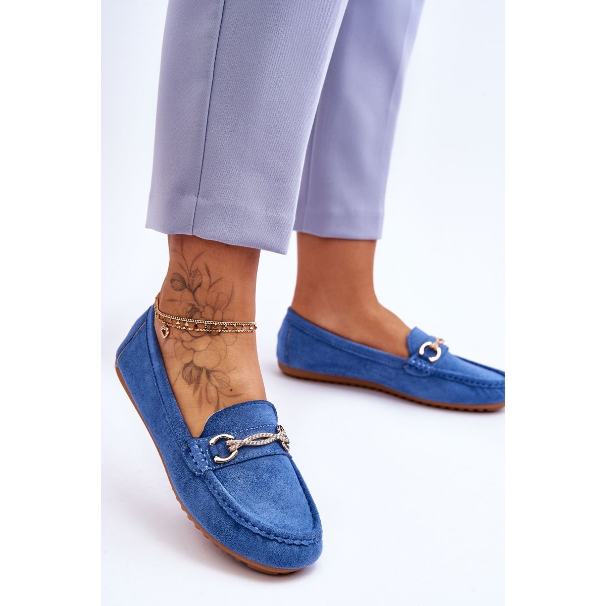 Upptäck elegans och komfort i en av säsongens mest fashionabla stilar! Klassiska Amera mockasiner är perfekta för moderna kvinnor som värdesätter stil och komfort. Tillverkade av högkvalitativ eko-mocka, dessa mockasiner ser extremt imponerande ut, och deras känsliga blå färg ger fräschör till varje styling.