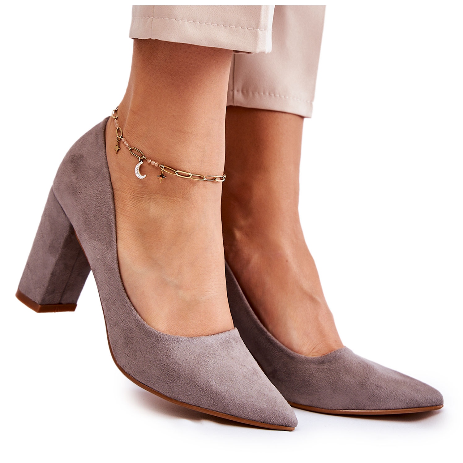 - Modell: Mocka Pumps På En Grå Kendra-klack