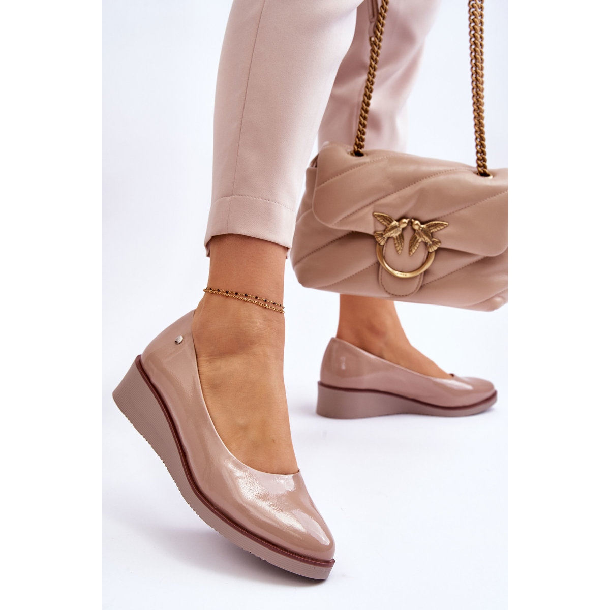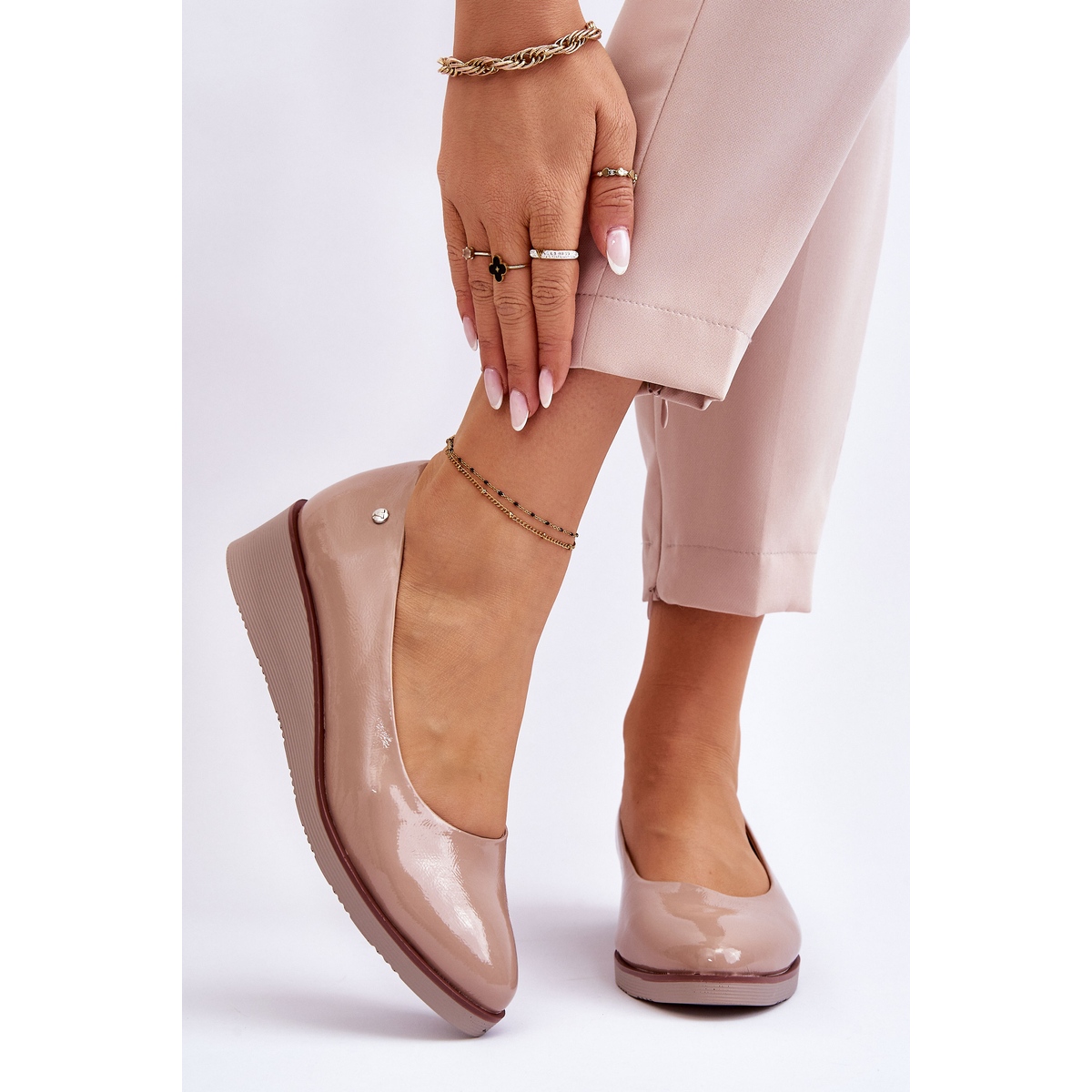 Upptäck elegans och komfort med klassiska patenterade Vinceza wedge pumps i en nyans av beige. Dessa snygga skor gjorda av högkvalitativt ekologiskt läder är det perfekta valet för kvinnor som värdesätter inte bara estetik utan också komfort. Sätt på en delikat plattform och en låg kil, pumparna säkerställer stabilitet och komfort att bära hela dagen lång.