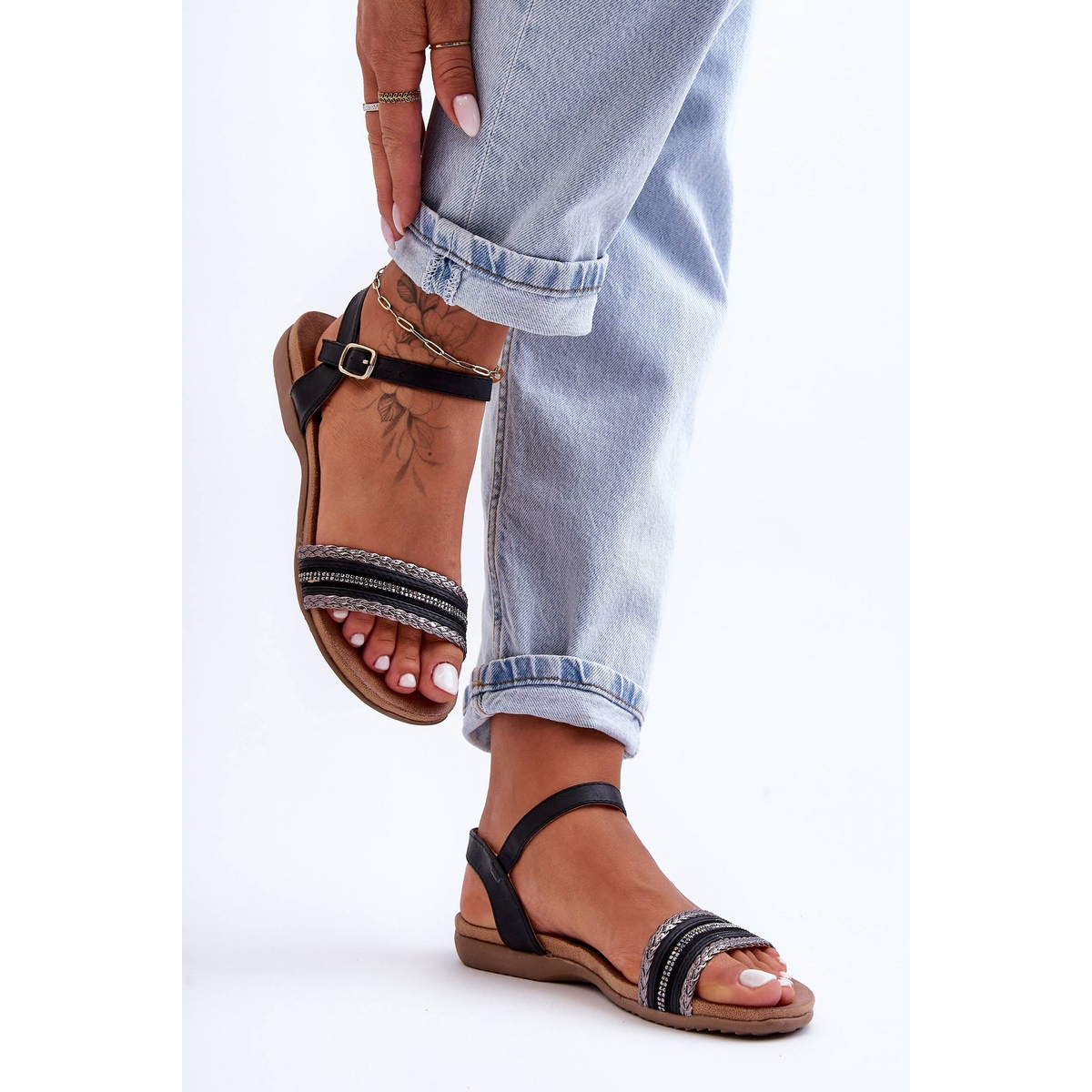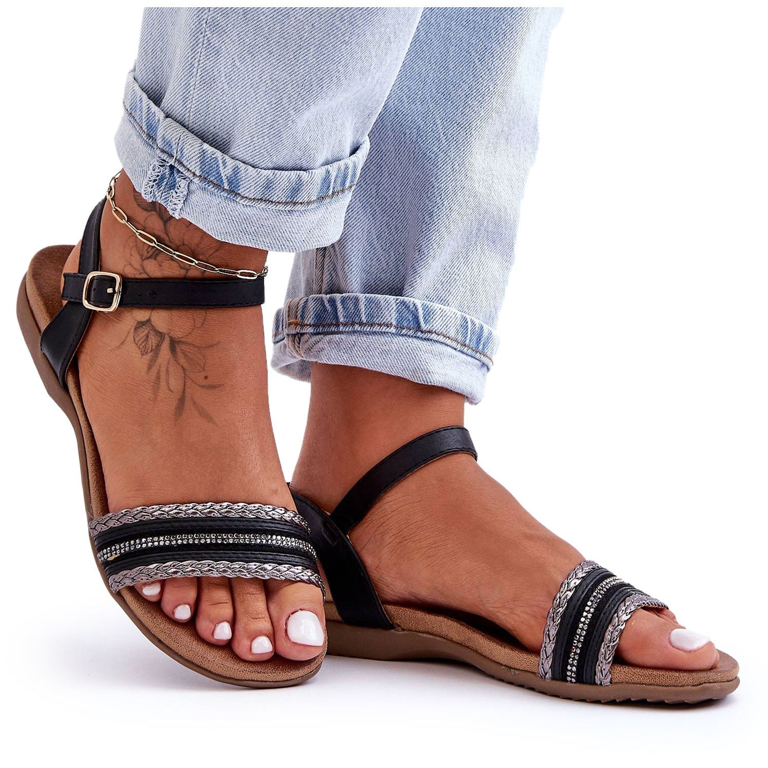 Detaljer: Klassiska platta sandaler för kvinnor Svart S.Barski 6708