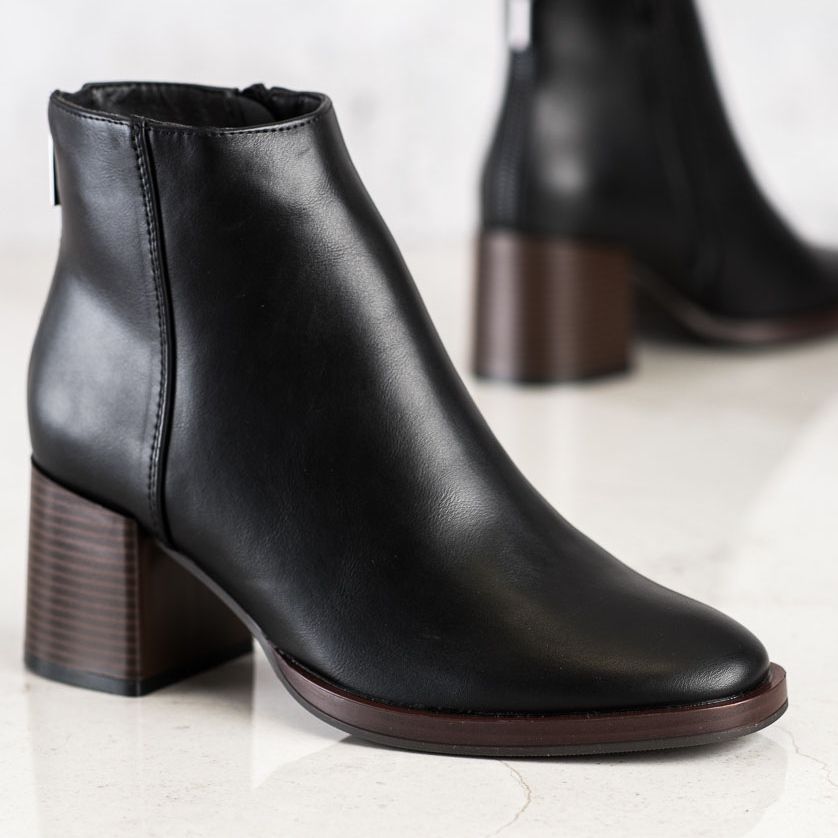 Stövlarna är ankelhöga och har en 6,5 cm blockklack, vilket garanterar komfort att bära, även under lång tid. Den runda tån och den inbyggda, förstyvade hälen ger dem karaktär och den dekorativa dragkedjan gör dem inte bara lättare att ta på utan utgör också ett intressant dekorativt element.