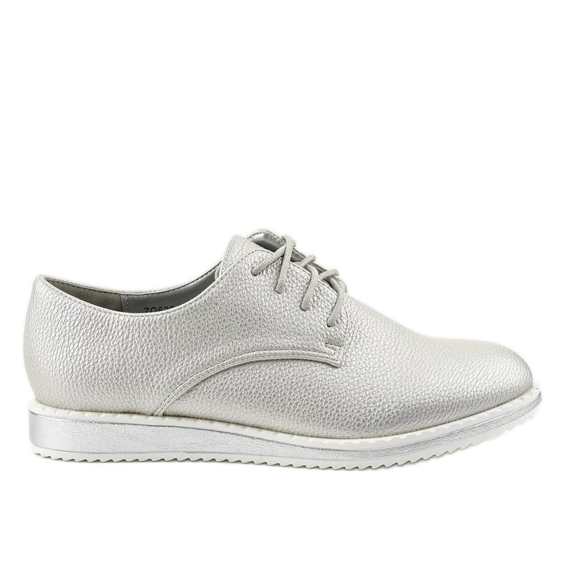 Skorna är monterade på en stabil, 2 centimeter vit plattform, som dessutom är märkt med en silverrand, vilket ger dem en originell karaktär. Den trampade sulan ger utmärkt grepp, vilket gör att gå i dessa skor till ett sant nöje. Den runda tån ger subtilitet och snörningsförslutningen ger en perfekt passform till foten.