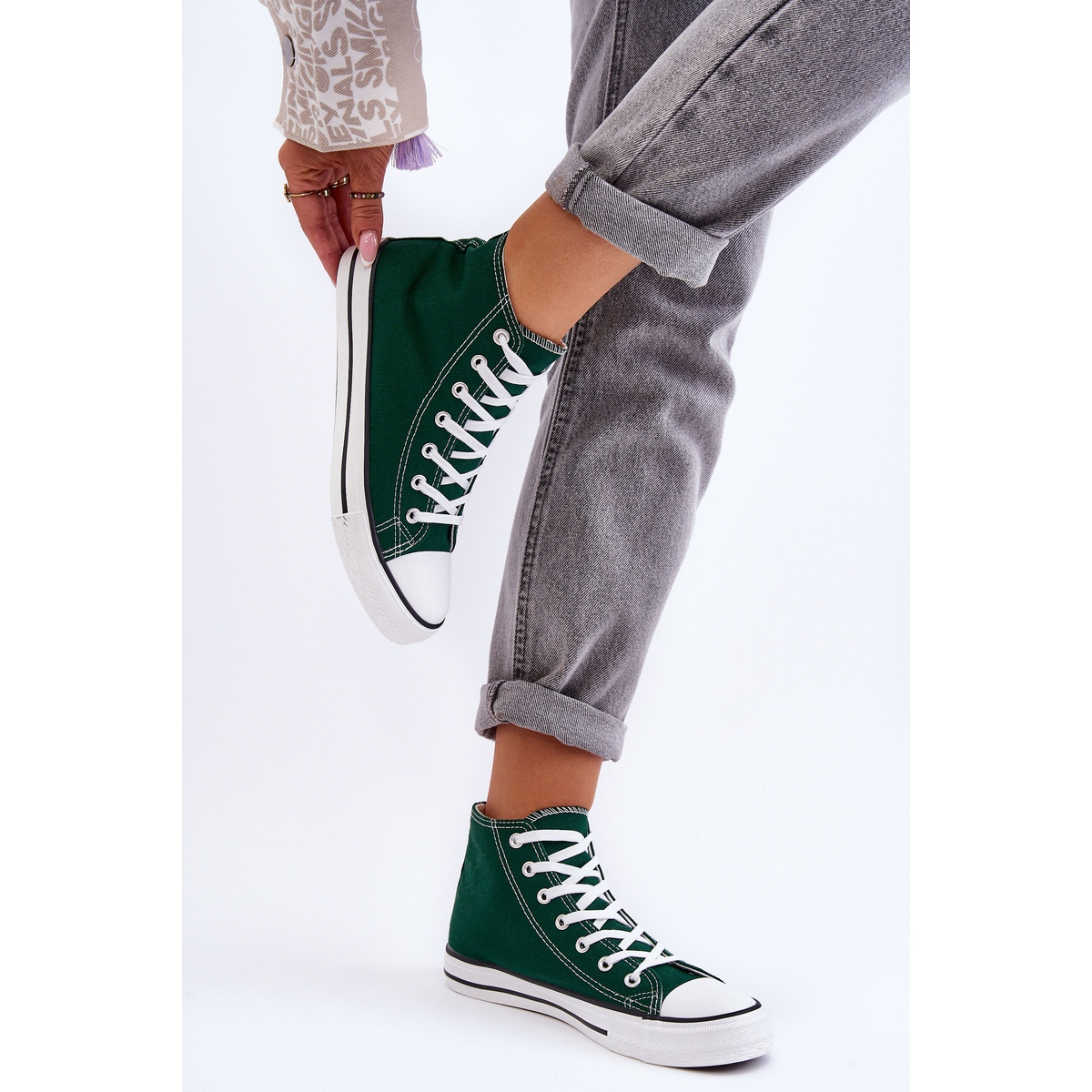 Upptäck karaktären och stilen hos vår-, sommar- och höstkollektionen av märket FR1 - vi presenterar Classic High Green Sneakers för kvinnor "Remos", ett riktigt måste för alla älskare av urban chic. Sneakersen designades för kvinnor som värdesätter kombinationen av komfort och tidlös design.