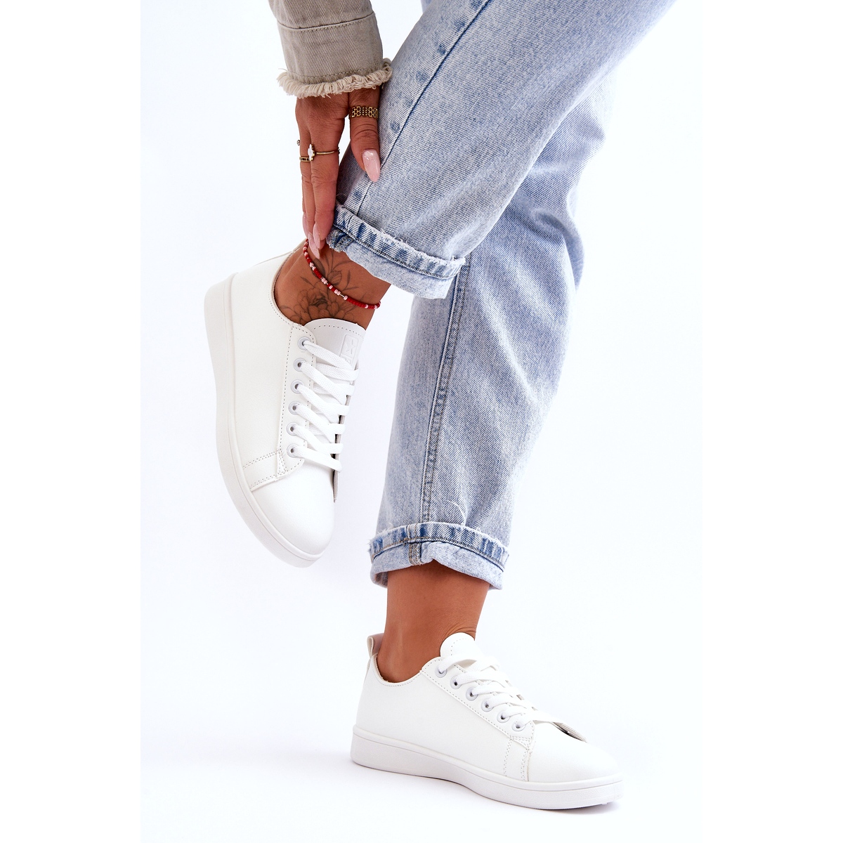 Den klassiska snörningsförslutningen möjliggör enkel och snabb anpassning till foten, vilket är särskilt viktigt i vardagsbruk. Dessa vita sneakers, som passar in i många stilar, från avslappnad till lite mer elegant, är en perfekt bas i vilken garderob som helst.