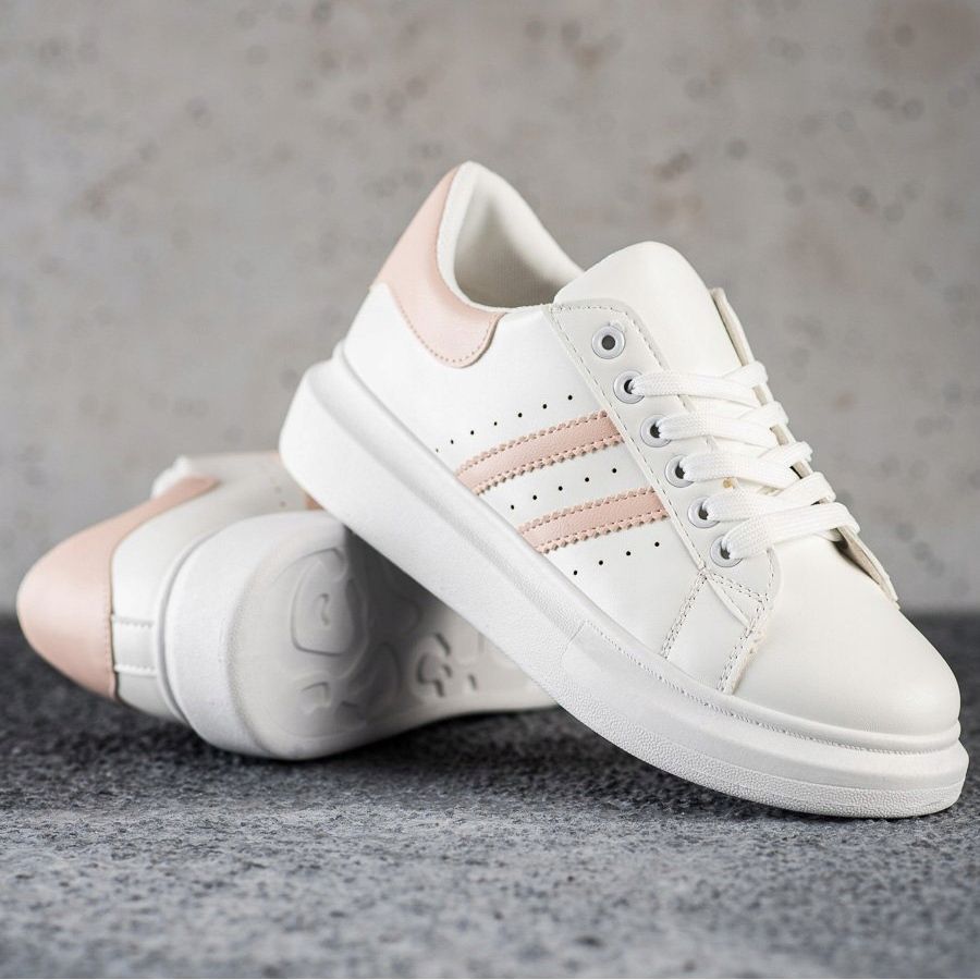 SHELOVET Classic sneakers med remmar i vitt är det perfekta valet för kvinnor som värdesätter stil och komfort i vardagsbruk. Dessa sportskor är perfekta för både vardags- och vardagsstyling. Tillverkade av högkvalitativt läderimitation ger de ett estetiskt utseende och är lätta att sköta.
