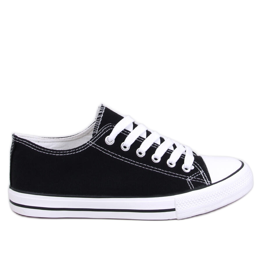 Sneakers är tillverkad av högkvalitativ tyg och säkerställer inte bara hållbarhet utan också komforten att bära. Klassiska svarta färger med en vit sula gör dem lätta att kombinera med olika stiliseringar - från avslappnad till mer eleganta. En rund näsa och en platt häl garanti komfort när du bär hela dagen.