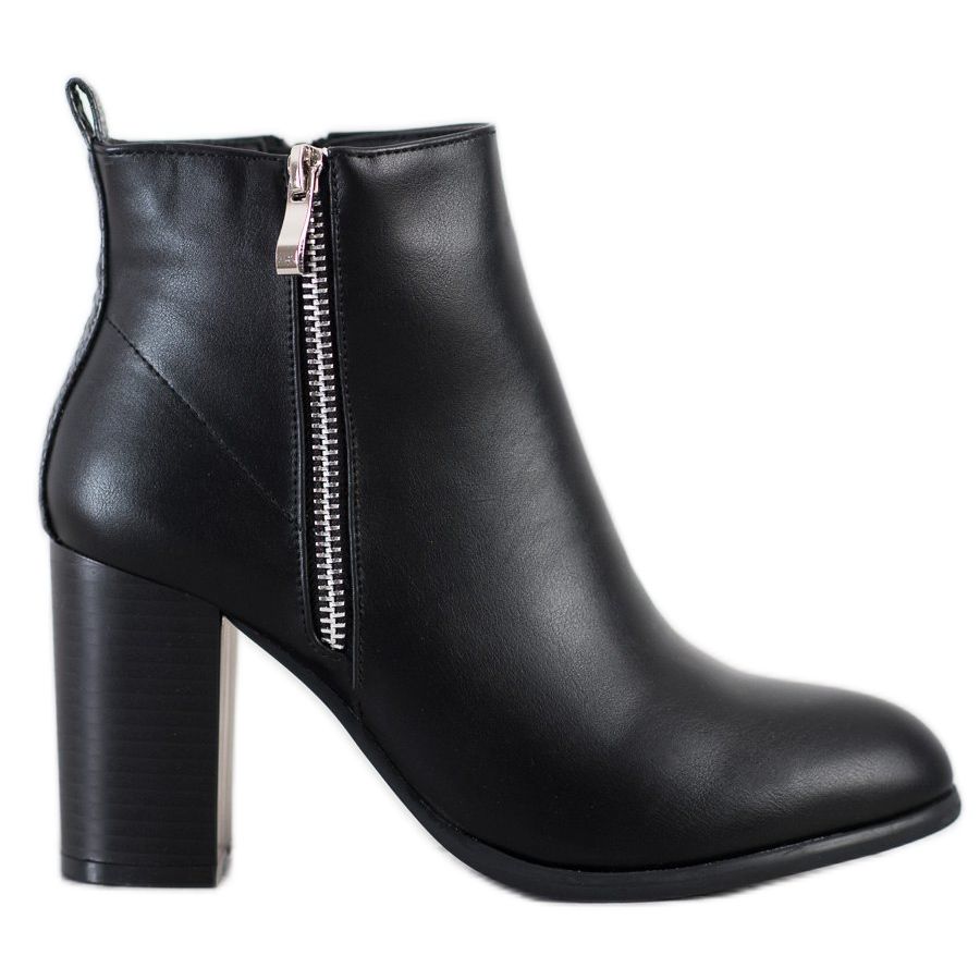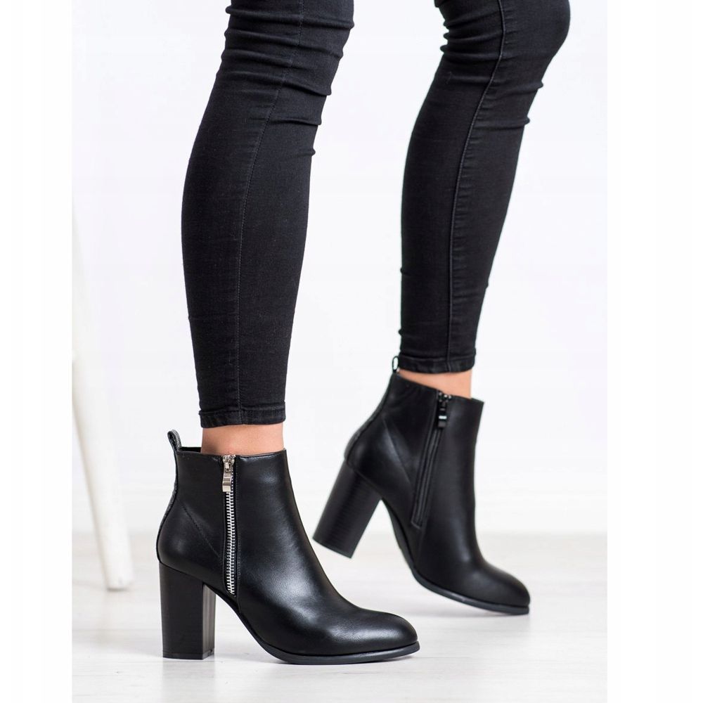 Tillverkade av högkvalitativt eko-läder, de kännetecknas av en rundad tå och en solid, förstyvad häl, vilket säkerställer komfort och stabilitet när de bärs. Stövlarna har en skafthöjd på 9-10 cm och en klack på 8,5 cm, vilket gör att de vackert förlänger benen samtidigt som de framhäver den feminina stilen.