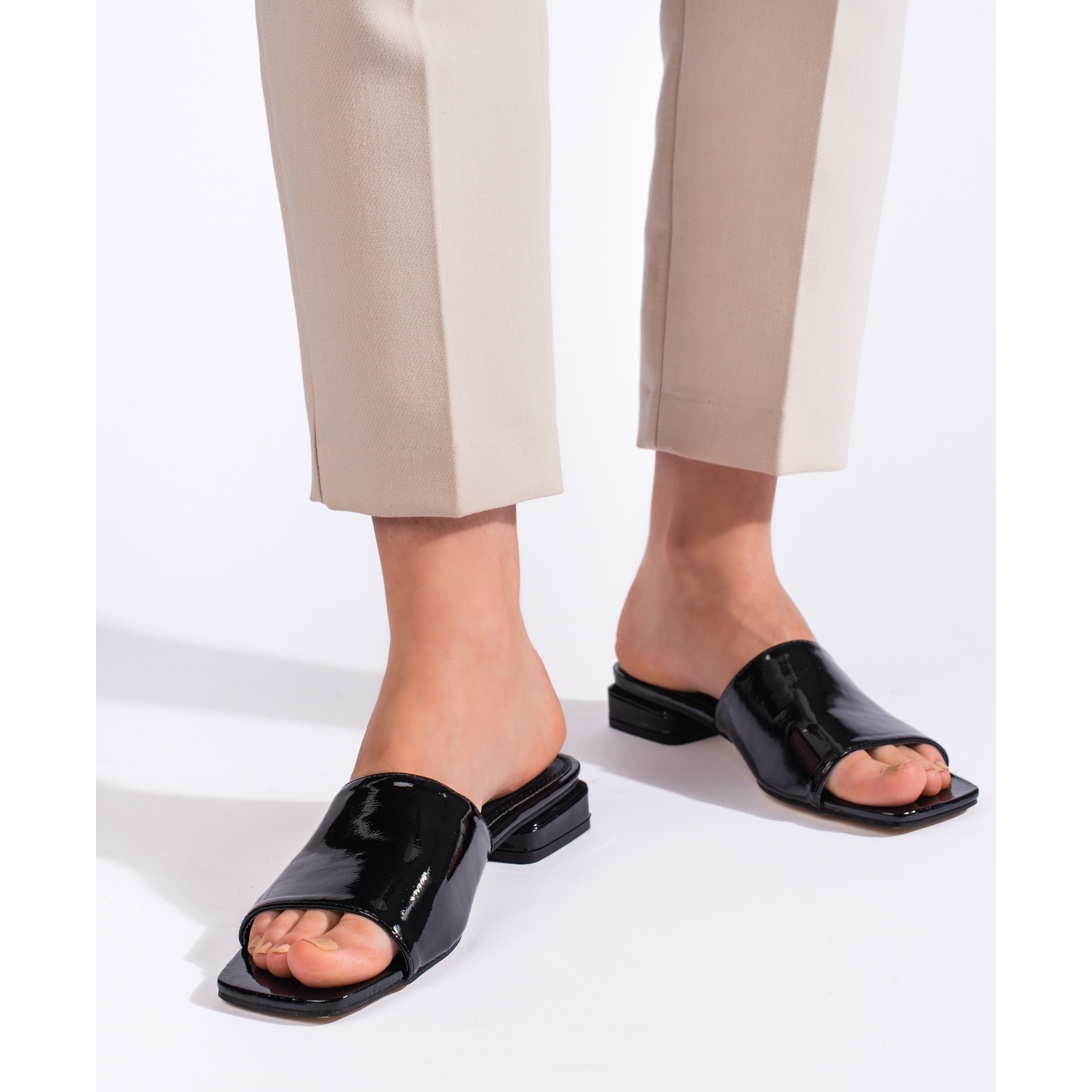 Upptäck klassikerna av komfort och stil med kvinnors höga klackar från Goodin. Denna modell kombinerar ett elegant utseende och komfort med att bära, vilket gör det till det perfekta valet dagligen. Tillverkad av lackerat organiskt läder ser svarta flip flops extremt snyggt och universellt - de matchar både avslappnade och mer eleganta stiliseringar.