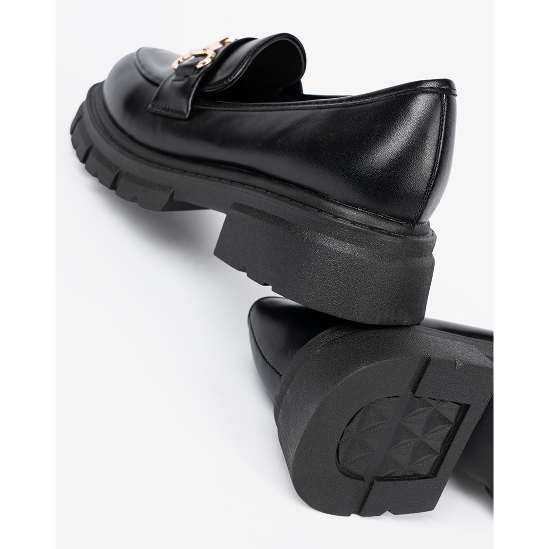Detaljer: Shelvt Klassiska svarta loafers med en metallklämma