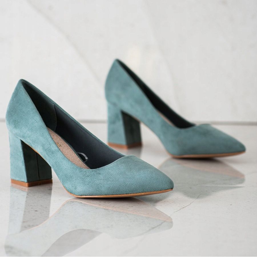 Pumparna är gjorda av ekologiskt mockaläder, vilket gör dem inte bara visuellt attraktiva, utan också miljövänliga. Den slimmade designen med en rundad tå och en stabil 7-centimeters blockhäl säkerställer en fräsch och elegant look, samt komfort även vid långvarigt slitage.