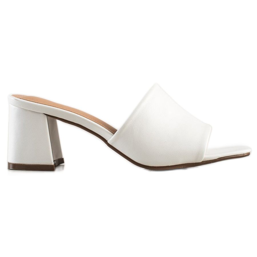 Njut av komfort och stil varje dag med klassiska vita högklackade mulor från SHELOVET!