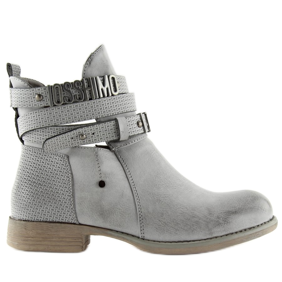 Upptäck extraordinär stil och komfort i form av grå 302-PA grå utskurna ankelboots! Dessa fashionabla ankelstövlar för kvinnor är det perfekta valet för kvinnor som vill sticka ut från mängden. De kännetecknas av imponerande utskärningar på sidorna av ovandelen, vilket ger dem en original karaktär. Präglade eko-läderinsatser och fashionabla remmar med inskriptioner runt vristen framhäver dessutom deras unika stil.