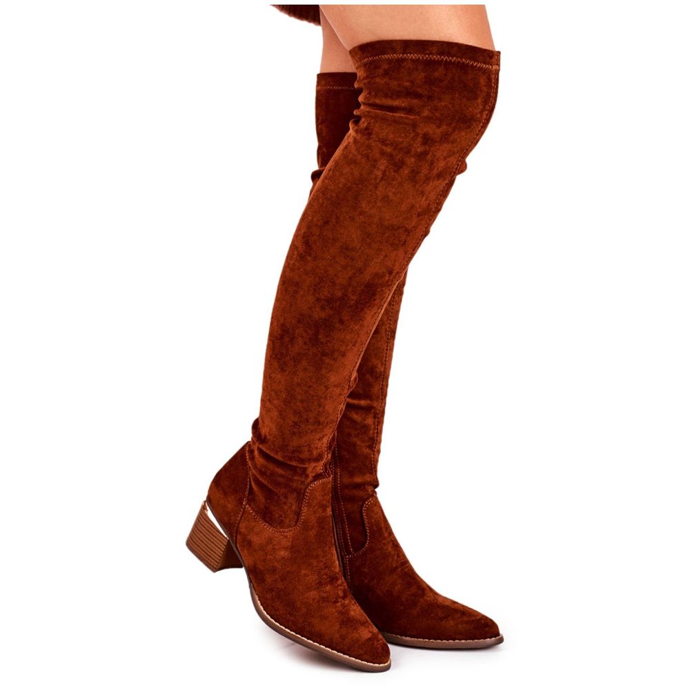 FRBS FRBS Knähöga stövlar för kvinnor Eco-Mocka Camel Indigo mångfärgad
