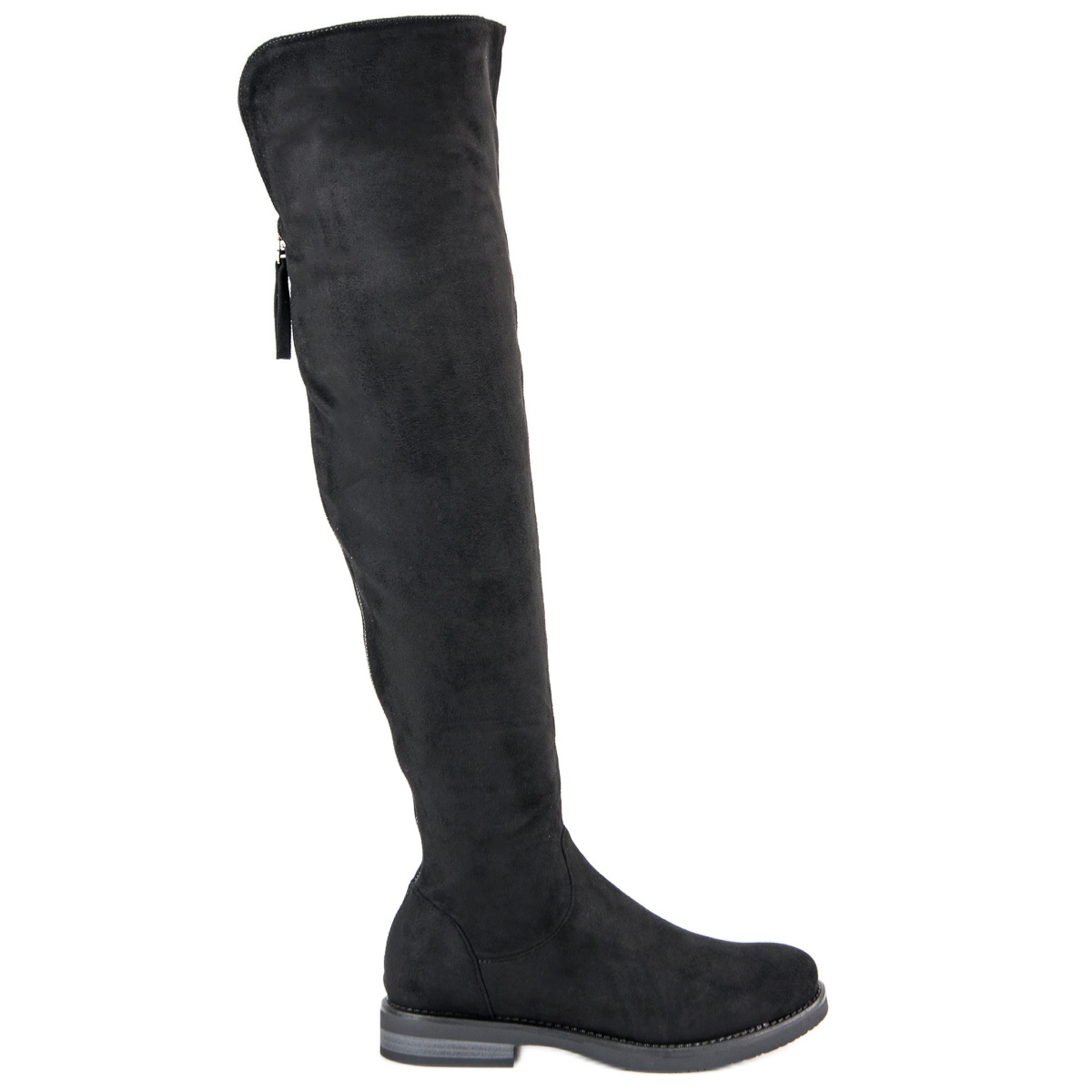 Upptäck elegans och komfort hos dammusketörer med en dekorativ svart dragkedja. Dessa skor är gjorda av högkvalitativ eko-mocka och är den perfekta kombinationen av stil och funktionalitet. Med en hög övre räckvidd över knäet passar musketörerna perfekt med olika stilar - både med avsmalnande byxor och klänningar.