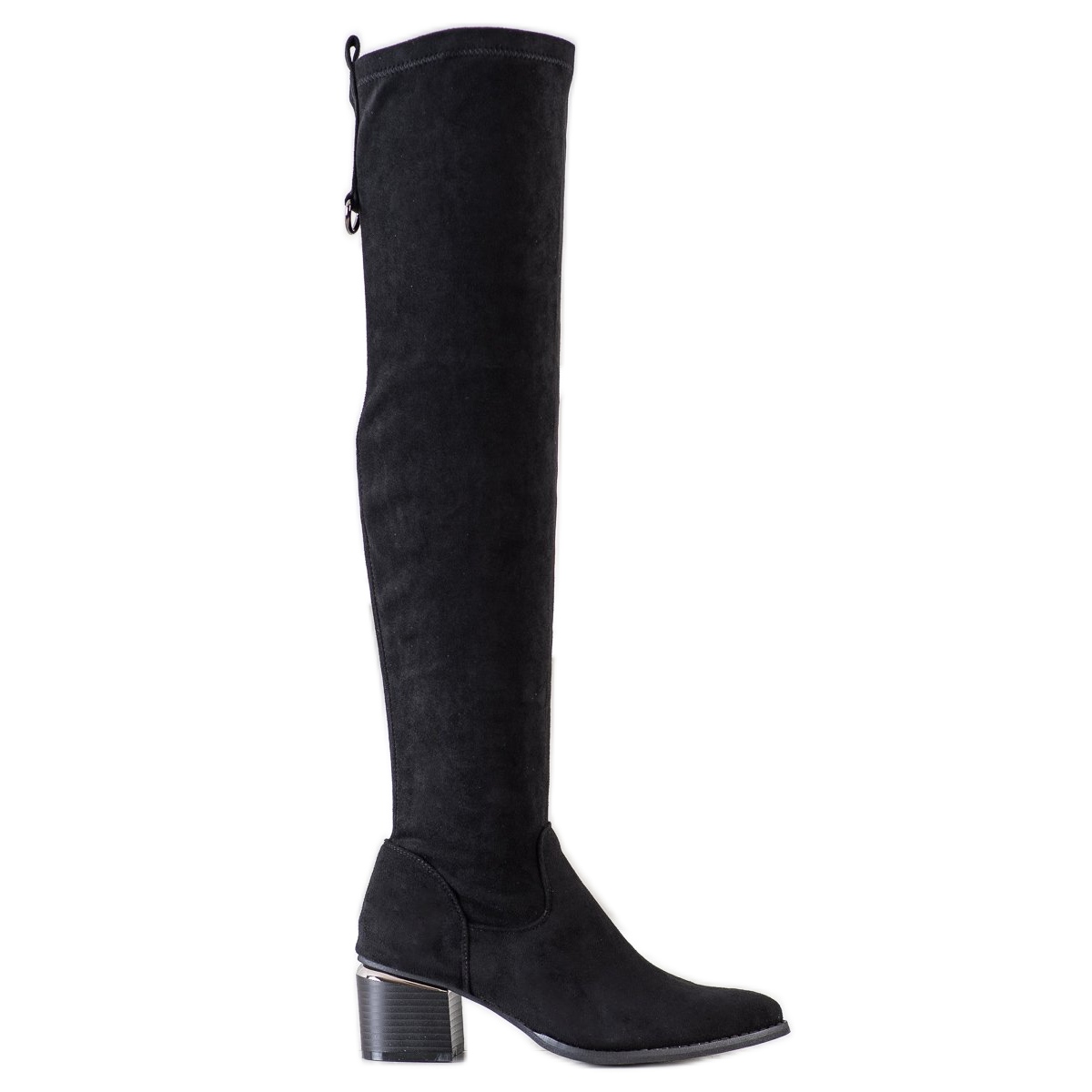 Musketörerna har ett praktiskt blixtlås, vilket gör det extremt enkelt att ta på och av dem. Den övre höjden på 56 cm når över knät, vilket ger dem exceptionell chica och elegans. Den 5,5 cm höga hälen stabiliserar ditt steg, och syntetsulan ger bra grepp, vilket du kommer att uppskatta under vinterpromenaderna.