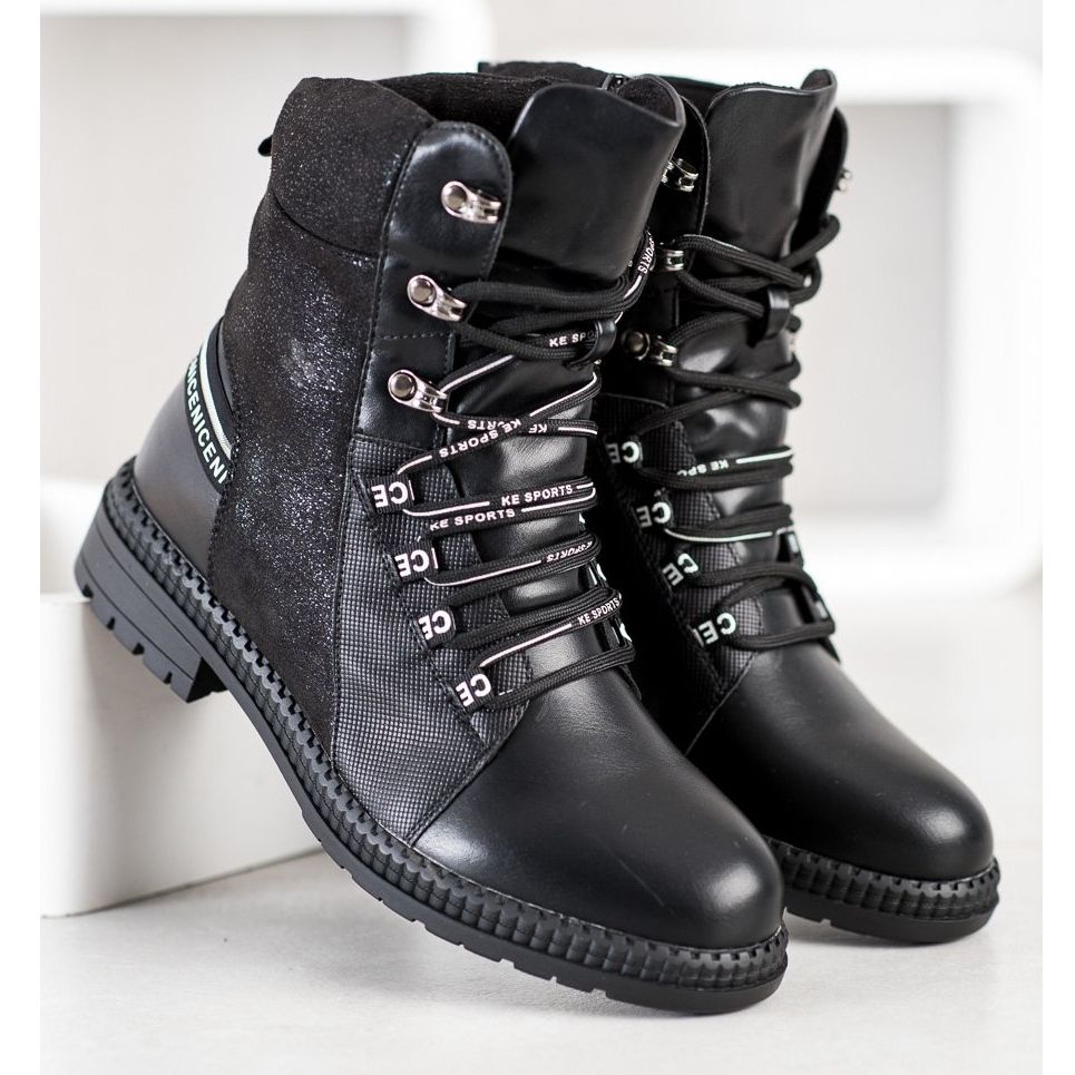 En bekväm 2 cm hög plattform och en 3,5 cm platt klack gör dessa stövlar perfekta för både långa promenader och vardagliga utmaningar. Den runda tån och snörningsstängningen möjliggör enkel anpassning till vilken fot som helst. Den övre bredden på 24 cm säkerställer användarvänlighet, och plastsulan med slitbana möjliggör säker gång.