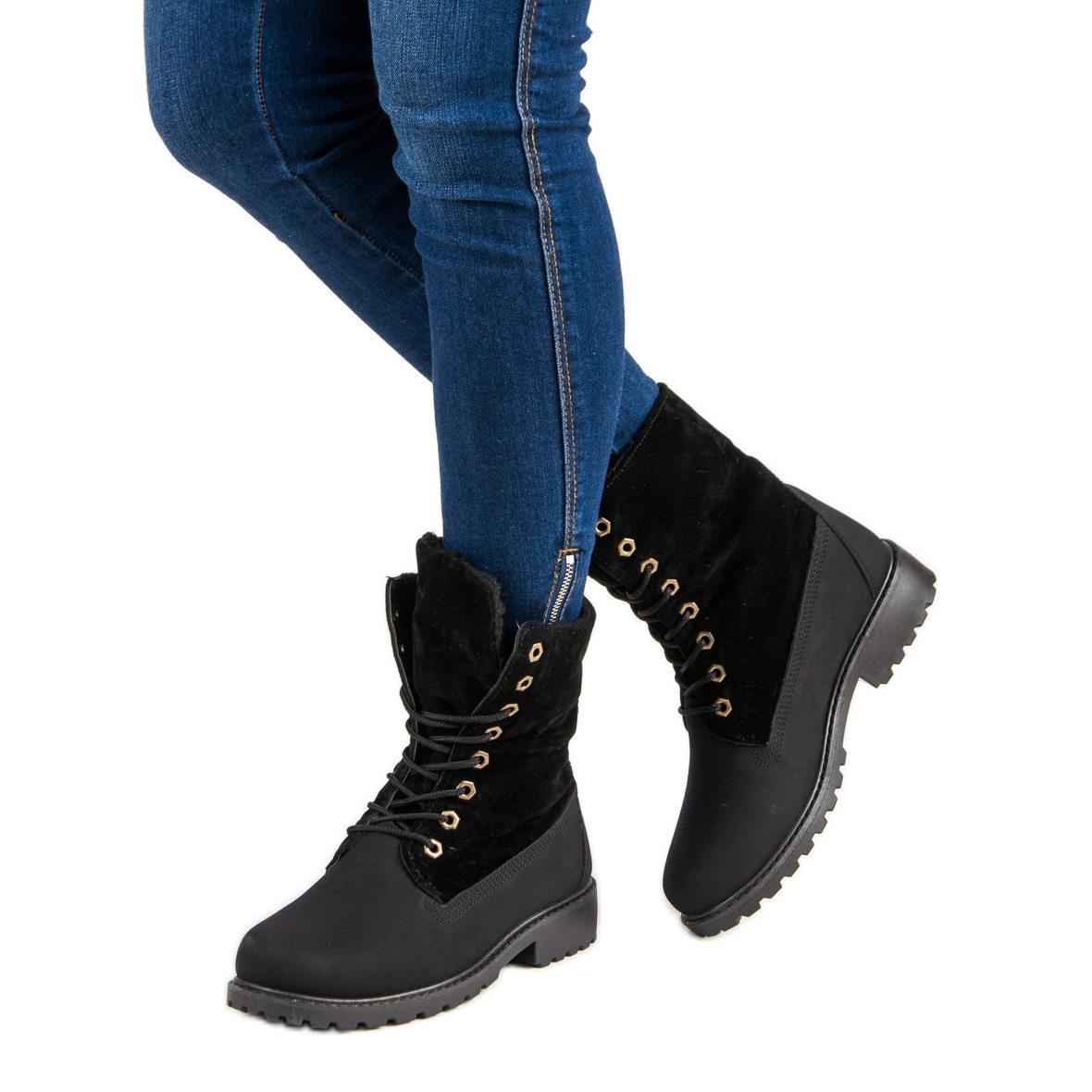 Svarta isolerade arbetsstövlar med snörning är det perfekta valet för kvinnor som vill kombinera stil med komfort. Dessa fashionabla skor, som når över ankeln, är en perfekt lösning för kallare dagar, tack vare deras isolering som säkerställer värme och komfort. Tillverkad av ekologisk mocka och läder, arbetarna är miljövänliga och deras skötsel är enkel.