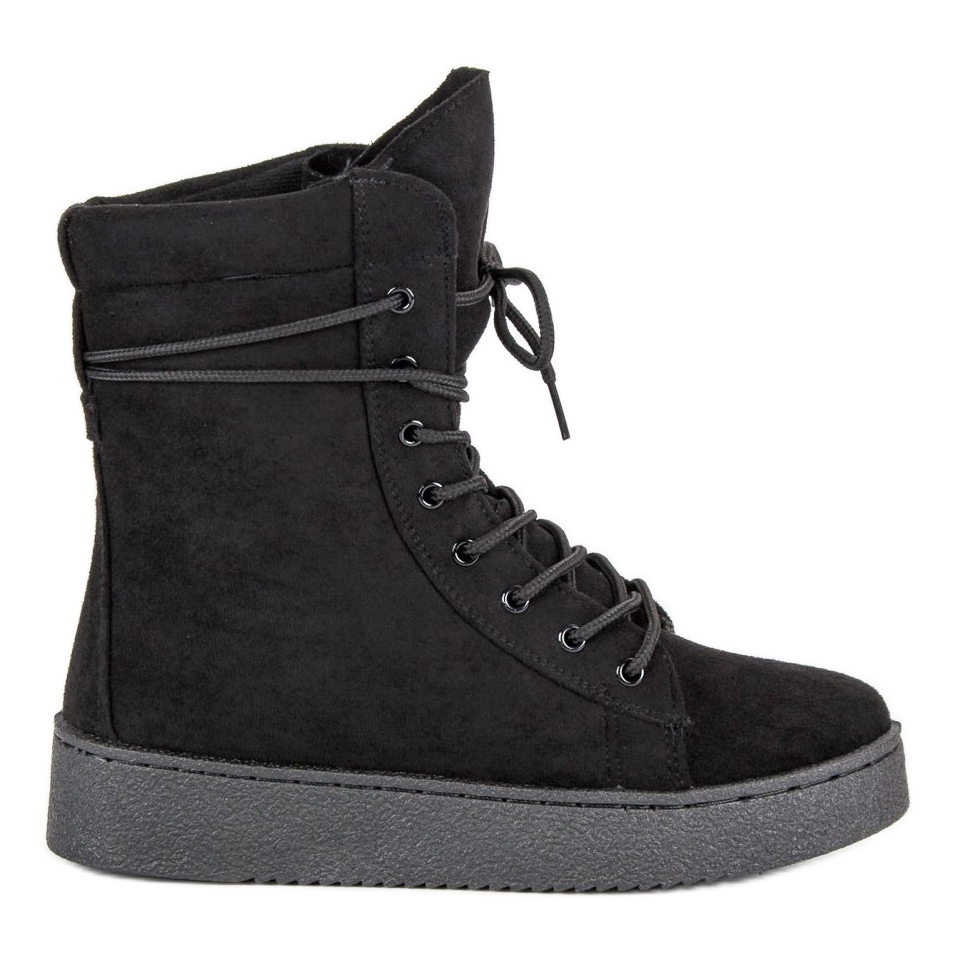 Snörningen som används gör att skorna passar perfekt till foten, vilket gör dem bekväma och bekväma att använda. Den fashionabla svarta färgen gör att dessa snöstövlar passar in i vilken vinterstyling som helst och ger den lite modern karaktär.