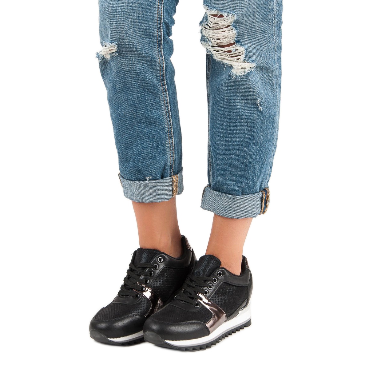 Dessa lätta sportskor är perfekta inte bara för vardagsbruk, utan också som en stilren del av din sportgarderob. Metalliska inlägg ger dem ett unikt utseende, vilket gör dem till en intressant accent i alla stylingar. Oavsett om du går på promenader, till jobbet eller på universitetet – kommer dessa svarta skor att vara ett perfekt komplement till din garderob. Välj komfort och stil med BUTYMODNE-kollektionen!