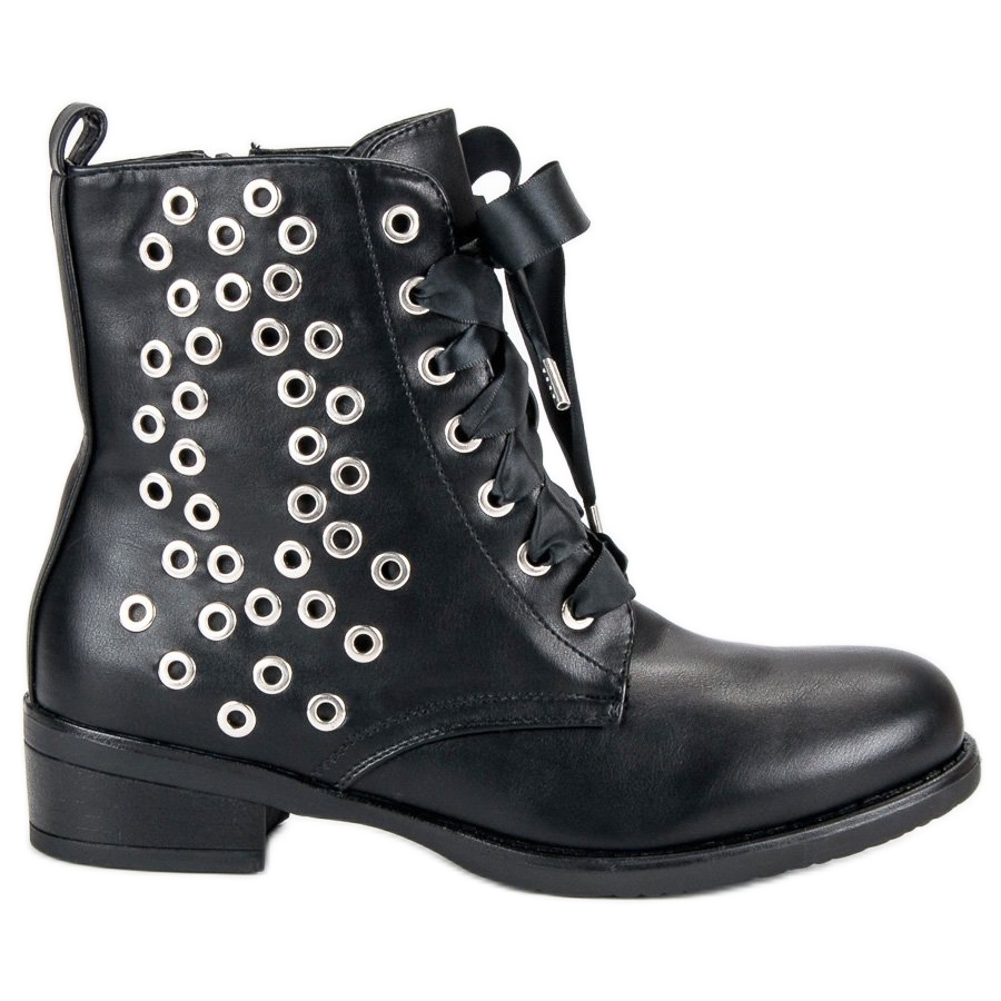 Letar du efter skor som kommer att ge karaktär till varje styling? Här är det perfekta valet! Svarta spetsarbetare är den perfekta accessoaren för kvinnor som vill framhäva sin individualitet och stil. Deras eleganta ovandel dekorerad med unika accenter i form av silverrhinestones på sidan av skon ger dem ett rovdjur och samtidigt moderiktigt utseende.