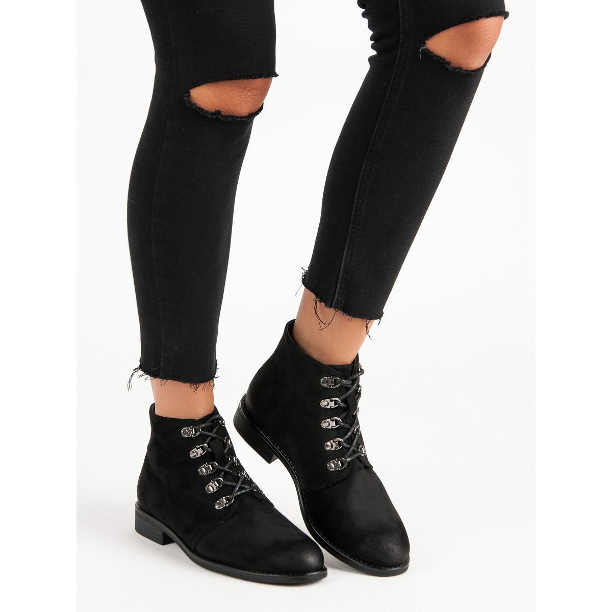 **VINCEZA svarta ankelstövlar med snörning – elegans och komfort för vardagen**