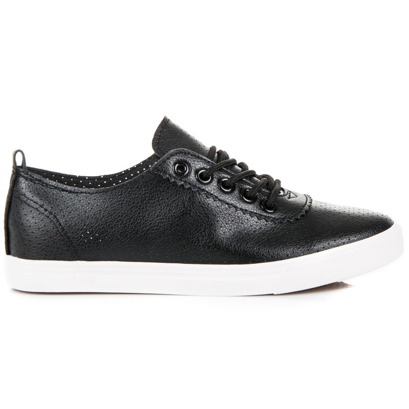 Vi presenterar svarta öppna sneakers med snörning från tillverkaren Bestelle - ett idealiskt val för kvinnor som värdesätter komfort, stil och mångsidighet. Dessa låga sneakers med en klackhöjd på upp till 3 cm är en perfekt lösning för dagligt bruk, vilket säkerställer bärkomfort och en moderiktig look.