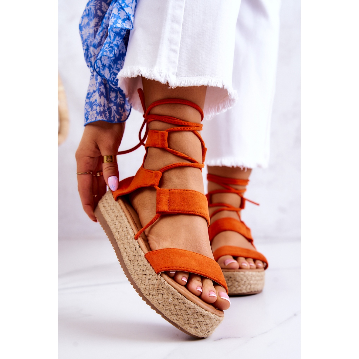 Vi presenterar FW1 platåsandaler för kvinnor i orange, som njuter av både utseende och bärkomfort. Dessa underbara espadrillor med snörning är perfekta för alla tillfällen - från vardagliga promenader till utekvällar med vänner.