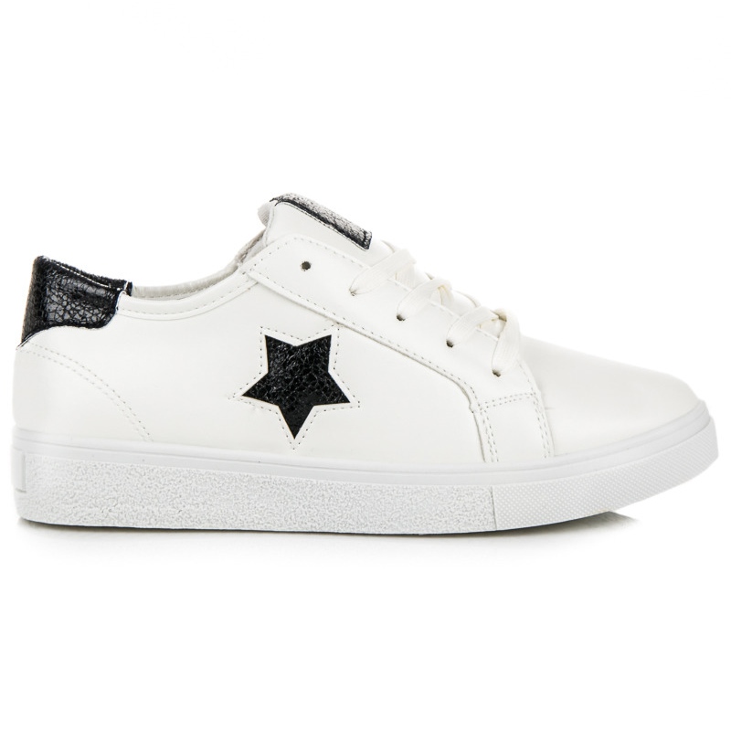 Vita sneakers med snörning med stjärna är ett perfekt val för kvinnor som värdesätter komfort men också en moderiktig look. Låt dem bli en integrerad del av din vardagliga stil!