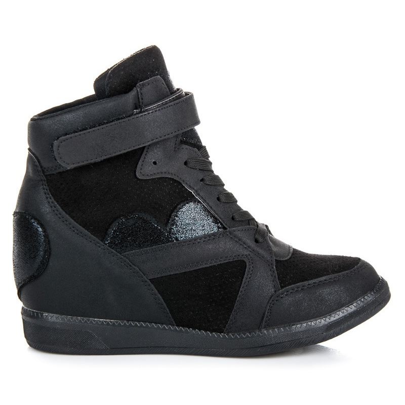Sneakersna kännetecknas av en rund tå, vilket säkerställer komfort när de bärs. Kardborreknäppning och snörningsdetaljer ger inte bara karaktär, utan gör dem också lättare att ta på och anpassa efter foten. Tack vare kilhöjden på 8 cm får du ytterligare elegans och förlänger benen optiskt.