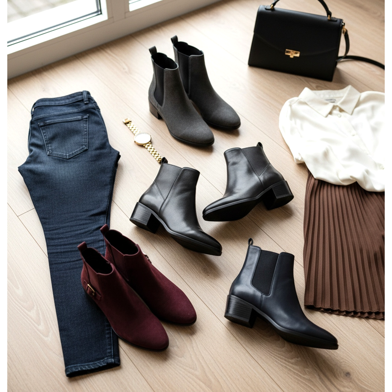 Stövlar är den perfekta kompromissen mellan elegans och praktisk komfort. För anställda som tillbringar större delen av dagen på kontoret och inte rör sig så mycket kan stövletter med 3-5 cm klackar vara ett utmärkt val. Sådana höjder är inte tröttsamma och lägger samtidigt till elegans och självförtroende till siluetten. Svarta ankelboots är en klassiker, men det är också värt att experimentera med brunt, vinrött eller marinblått. Kom bara ihåg att inte övertänka hälhöjden – anställda som går mycket kommer att vara tacksamma för att de väljer stövlar med platt sula eller med låg, bekväm klack. Stövletter är en trendig modell som fungerar perfekt på moderna kontor. Du kan bära dem med jeans (om det är business casual), cigarettbyxor eller eleganta kjolar.
