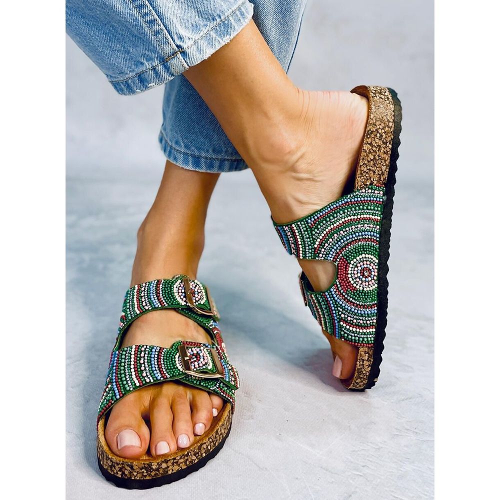 Seastar Seastar Korktofflor med pärlor från Adaora Green grön