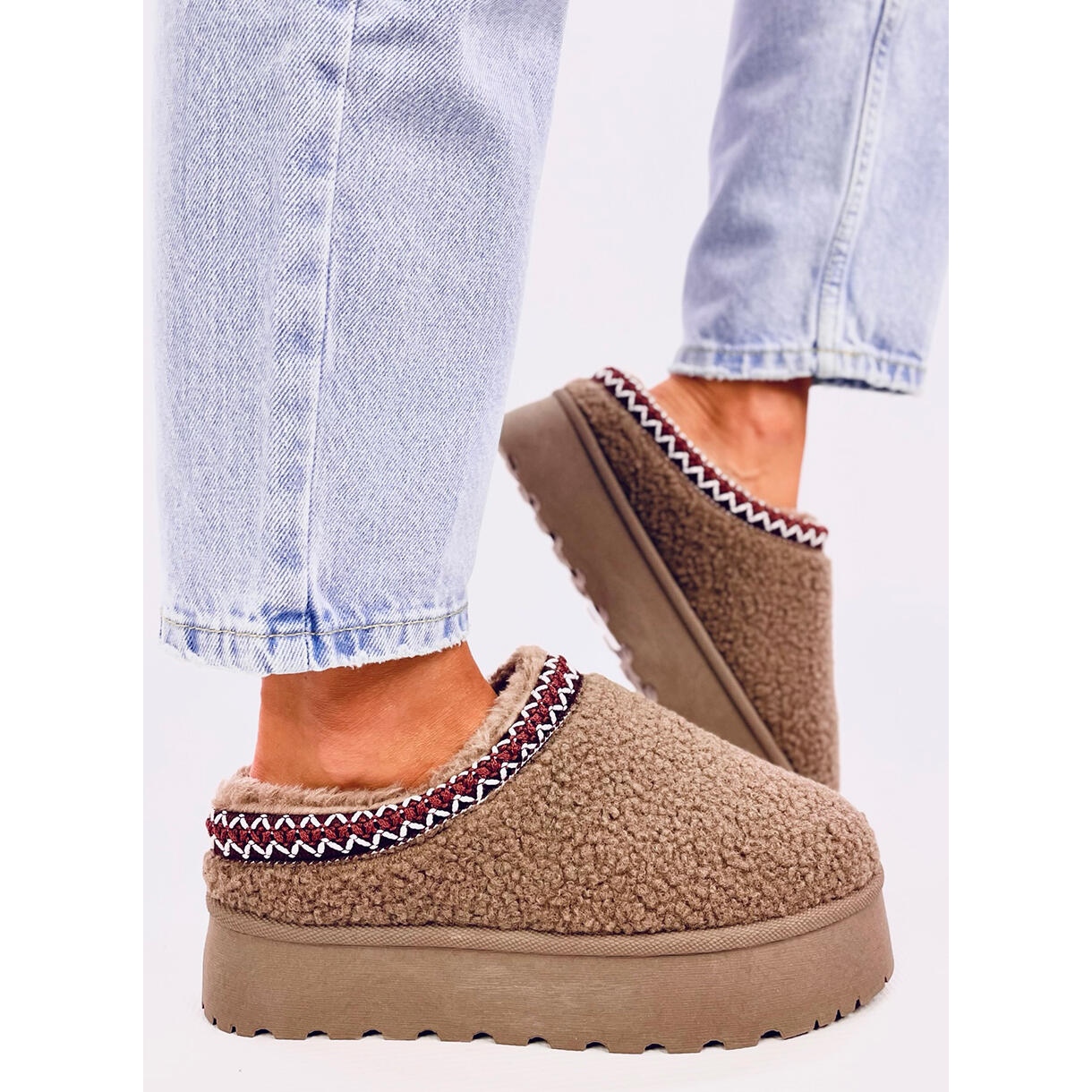 Inna marka Korta snökängor för kvinnor med fårskinn, khaki-brun