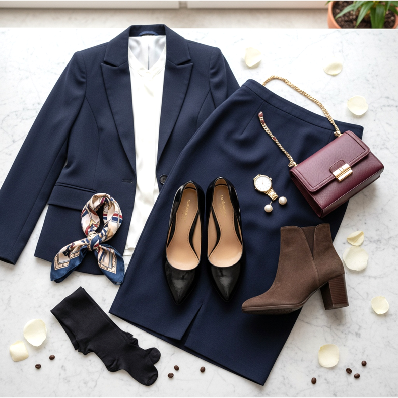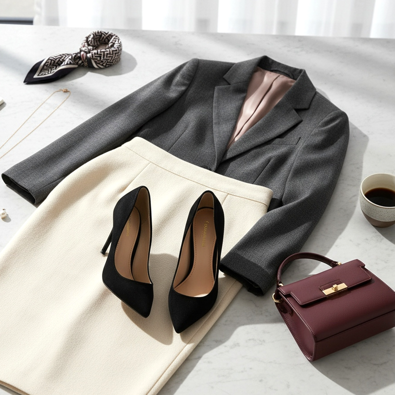 Kom ihåg att en kostym är en klassisk uppsättning, så höga klackar hjälper dig att behålla de rätta proportionerna av din figur och få hela stylingen att se harmonisk och elegant ut.