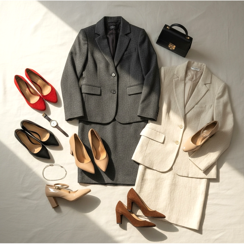 Kom ihåg att en kostym är en klassisk outfit, så högklackade skor är bäst, eftersom de hjälper till att behålla rätt proportioner av din figur. Välj modeller i dämpade färger som matchar resten av din styling och njut av en bländande look oavsett tillfälle.