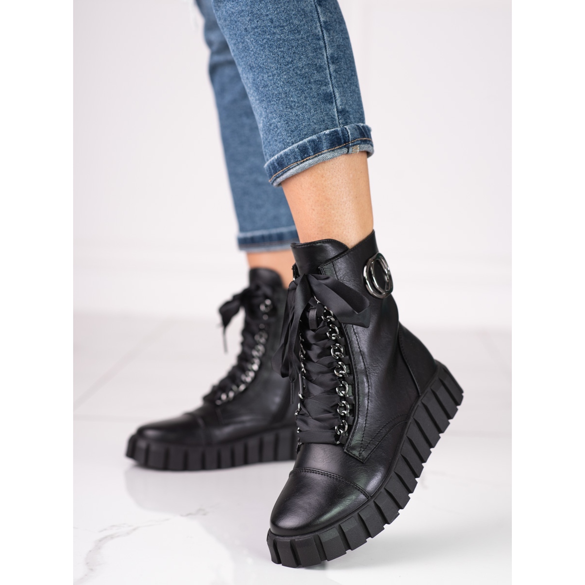 Lär känna de unika dambaggies spetsade med ett band från tillverkaren W. Potocki - en perfekt kombination av komfort och modestil. Dessa svarta stövlar är ett perfekt val för höst/vintersäsongen och kommer att fungera bra med all vardagsstyling.