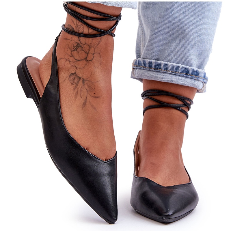 Detaljer: Kvinnor bundna ballerinas svarta sandaler