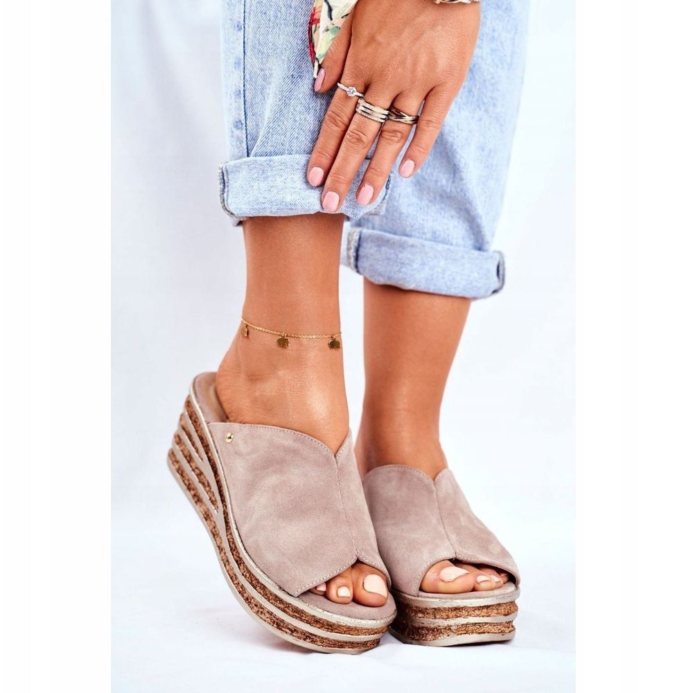Information: Kvinnor läder tofflor på kil Nicole 2559 Lemonade beige