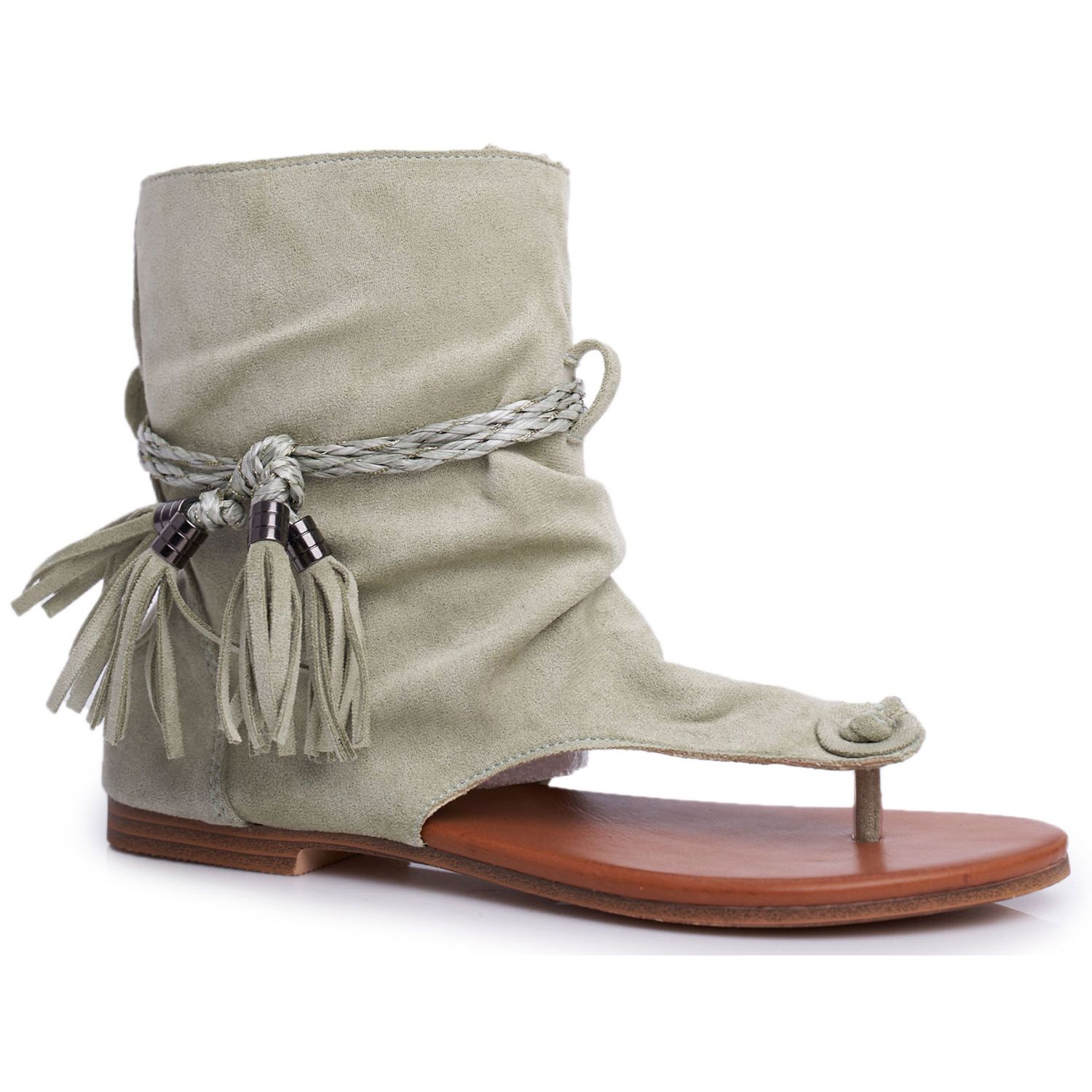 Dessa sandaler sticker ut inte bara för sitt ovanliga utseende, utan också för sina praktiska lösningar. Den höga ovandelen tillför charm och elegans, och fransarna framhäver deras moderna karaktär. De är gjorda av ekologiskt mockaläder och ger inte bara ett estetiskt utseende, utan också komfort att bära. Den syntetiska sulan och den ekologiska innersulan gör dem perfekta för sommardagar.