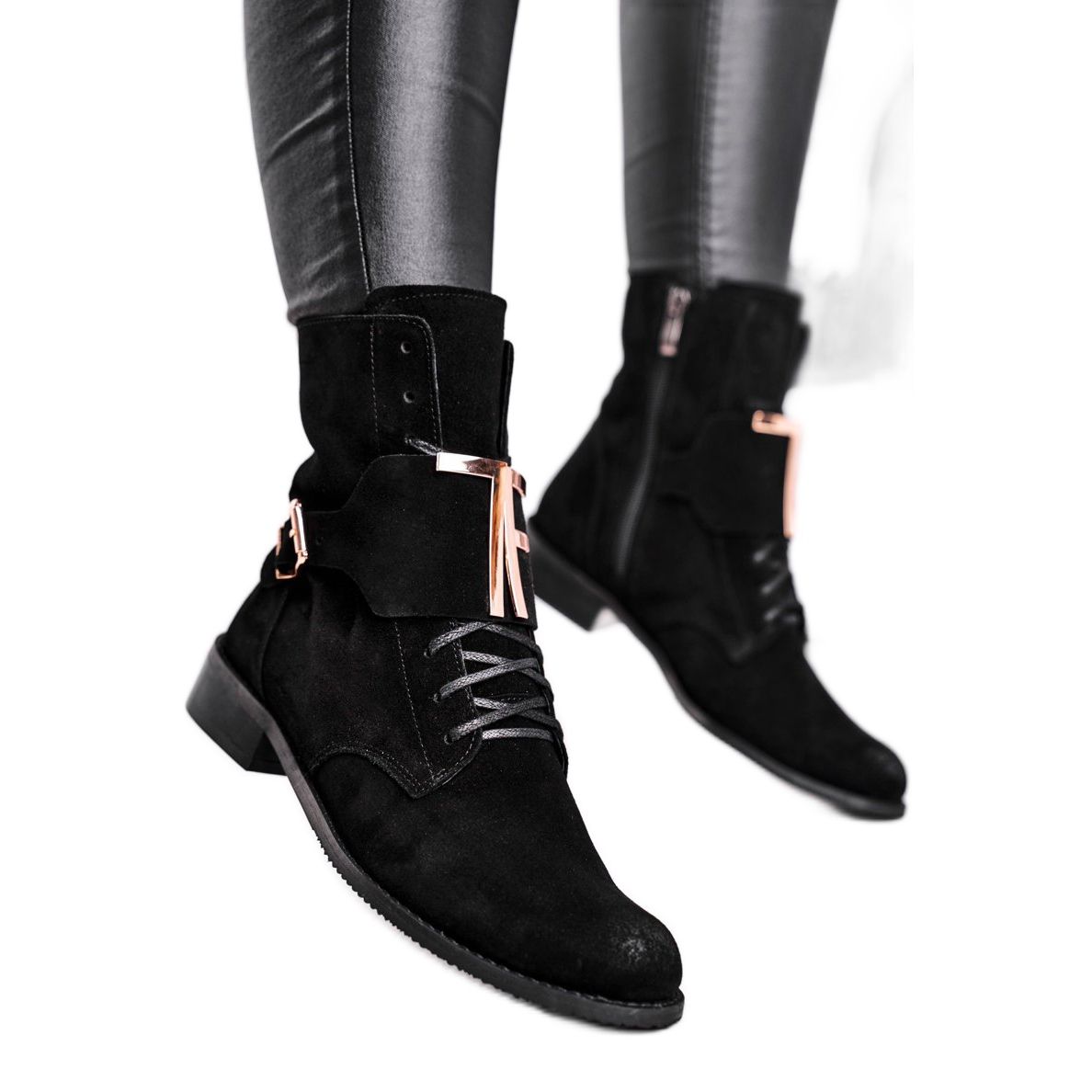 Tack vare dekorationen i form av ett stort spänne och guldbokstäver får stövlarna en unik karaktär som passar perfekt in i modetrender. Deras praktiska sömnad på sidan av dragkedjan gör dem lättare att ta på, och extra snören ger en perfekt passform till benet.