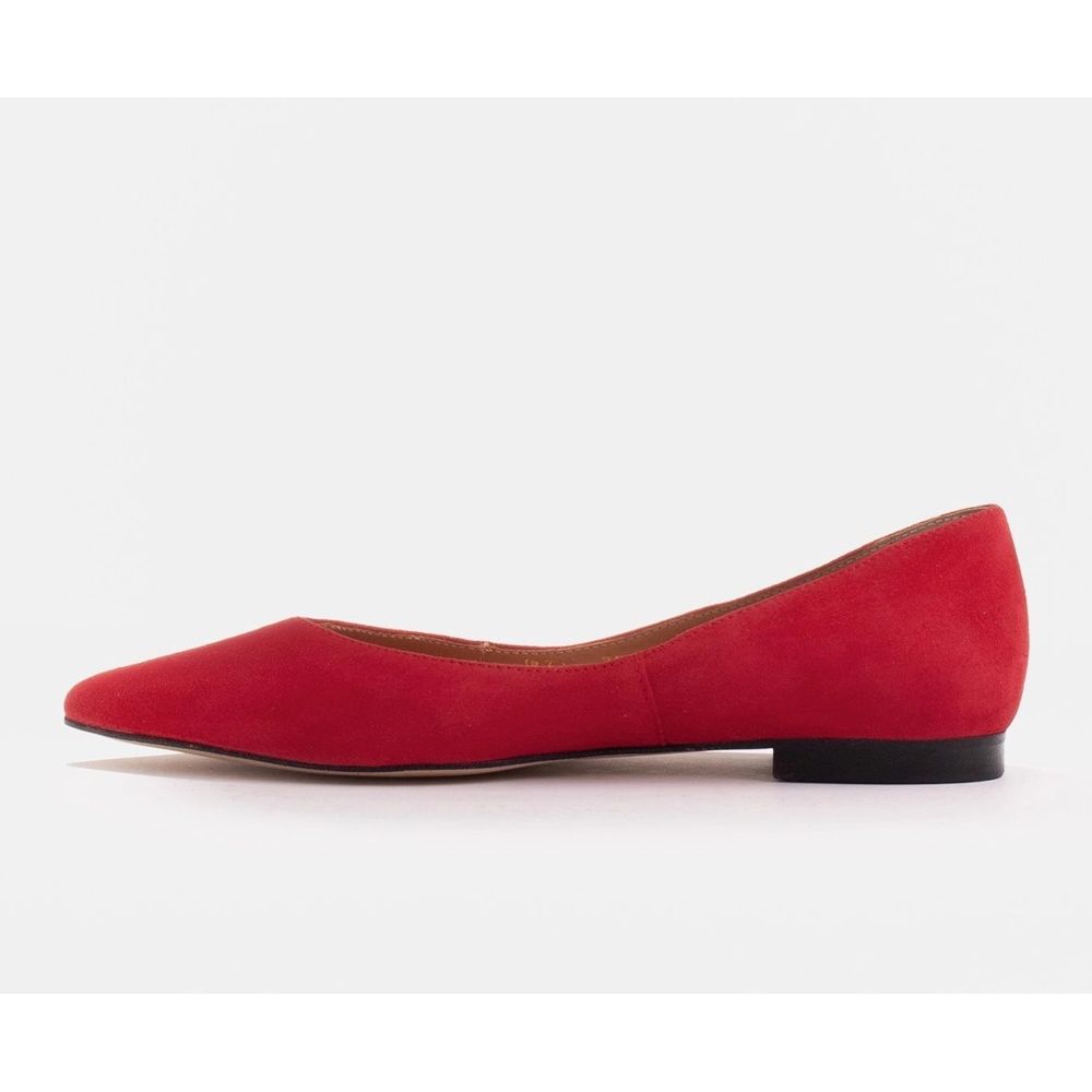 Elegant, lätta och bekväma - Marco Shoes Red Ballerinas med låga sidor är ett förslag för kvinnor som värderar ett klassiskt snitt med en modern accent. Den spetsiga näsan förlänger figuren och mocka, naturligt yttre läder lägger till stil och subtil elegans. Perfekt för arbete, för möten och varje dag.