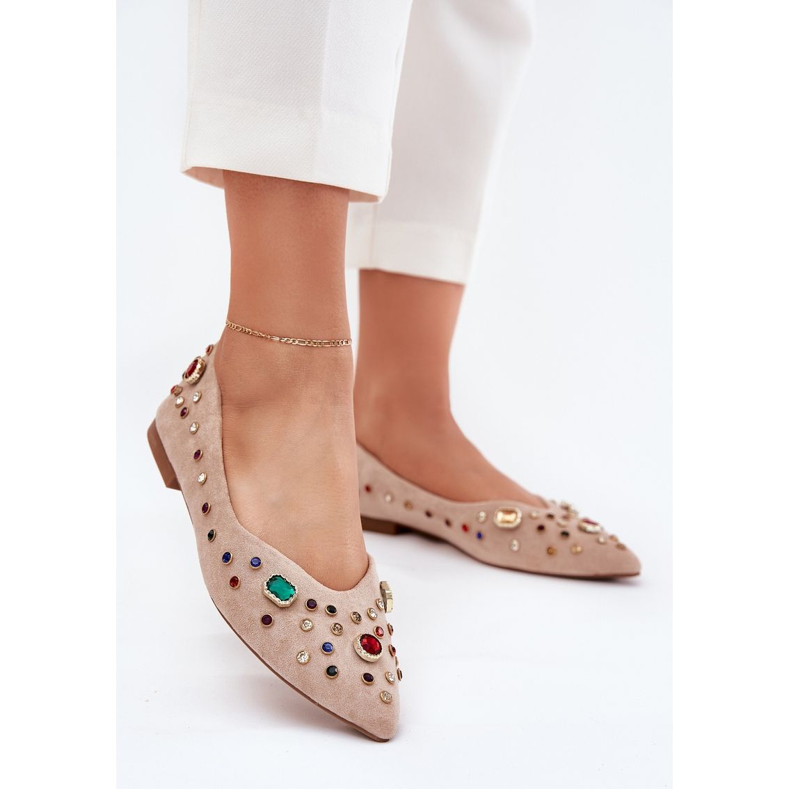 Detaljer: Kvinnors ballerinas dekorerade med beige kristaller
