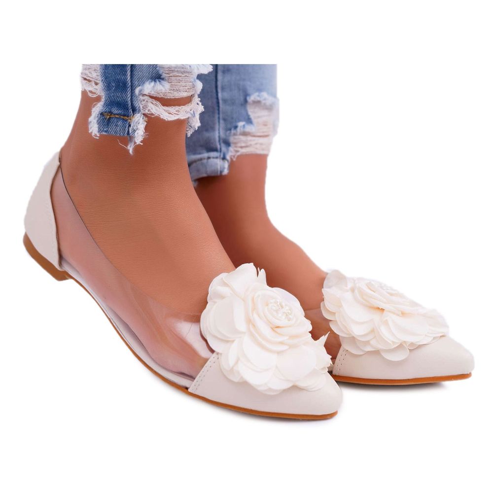 LU BOO Kvinnors Ballerinor Lu Boo Beige Med Blomster Genomskinlig Dairin