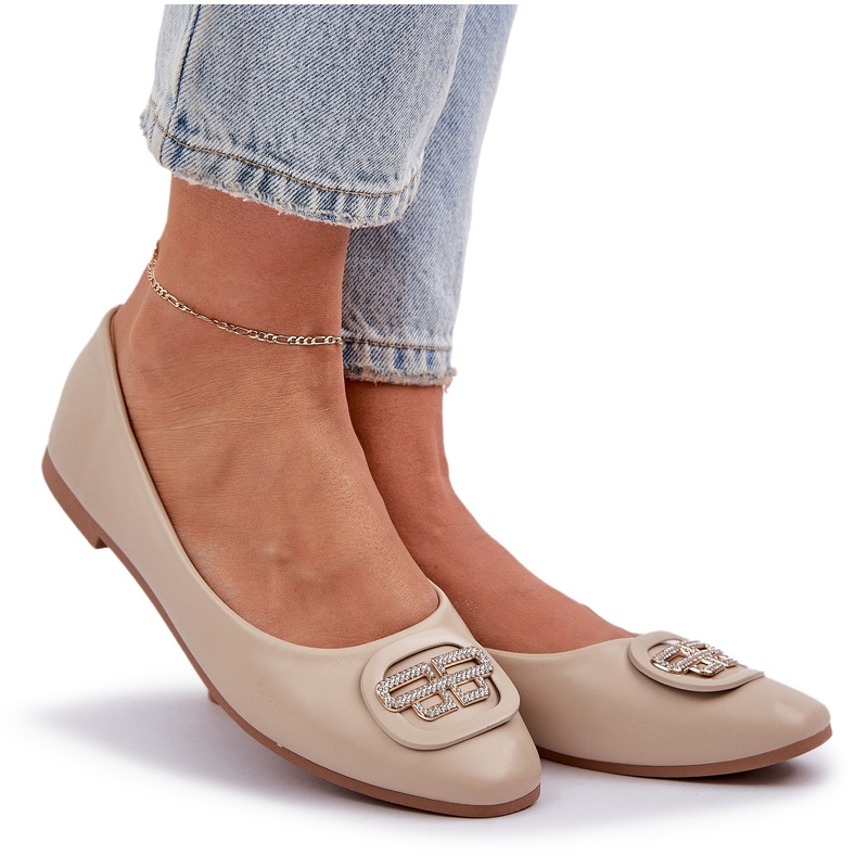 Upptäck elegans och komfort i vardaglig stil tack vare Beige Ballerinas på en platt sula med en prydnad! Dessa unika kvinnors skor gjorda av högkvalitativa ekoläder kombinerar klassisk design med moderna accenter. En platt sula med en höjd av endast 1 cm ger inte bara bekvämlighet, utan också stabilitet under all -dagslära.