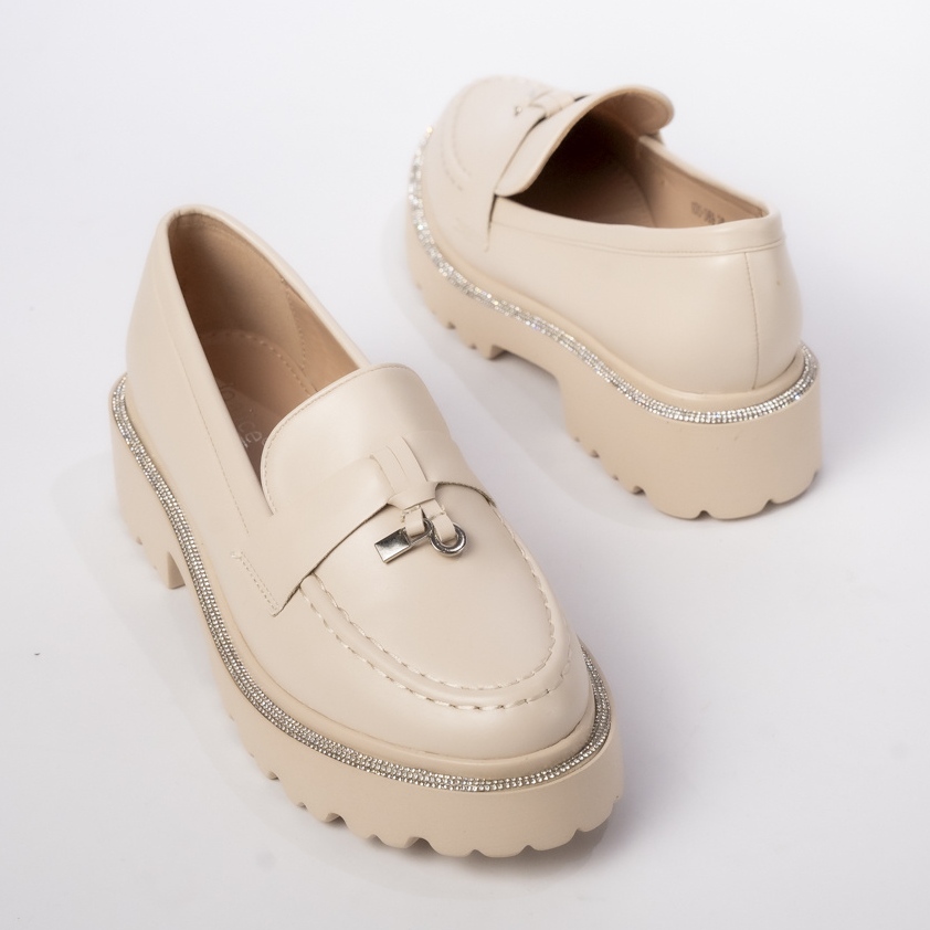 En tjock, omtraschad sula ger inte bara komfort, utan också stabilitet när man går, vilket är oerhört viktigt på en intensiv dag. Subtila dekorationer i form av zirkonium och fransar lägger till en unik karaktär till skorna, vilket gör att de enklaste stiliseringarna får en elegant accent.