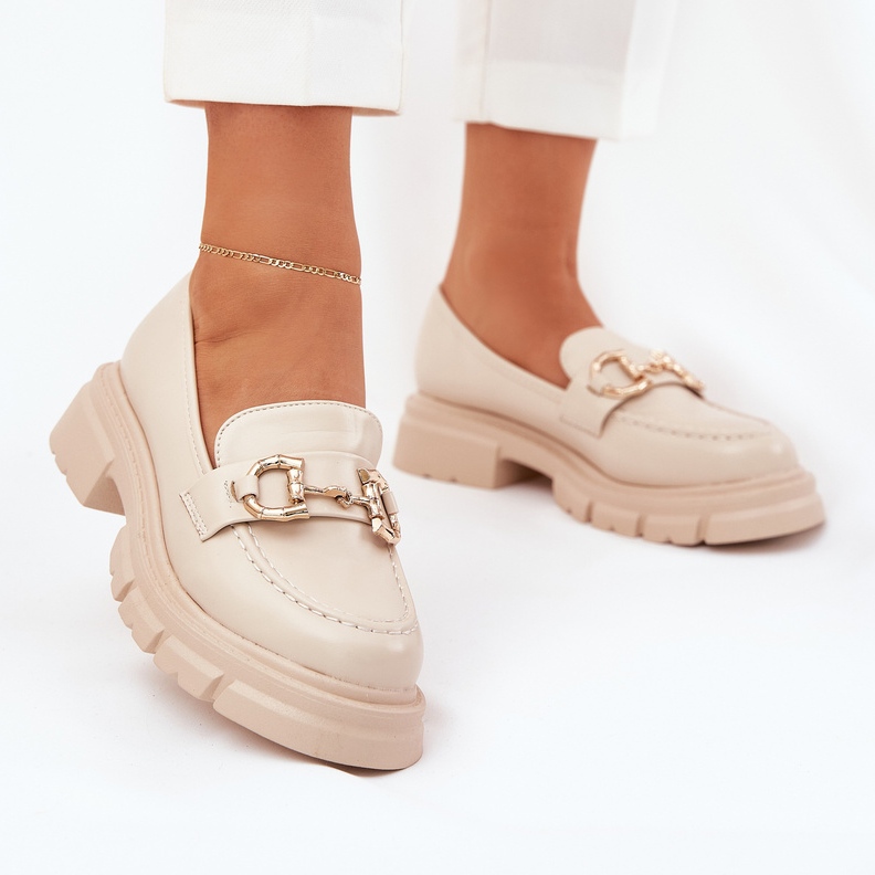 Detaljer: Kvinnors Eco Leather Loafers med gyllene detalj beige