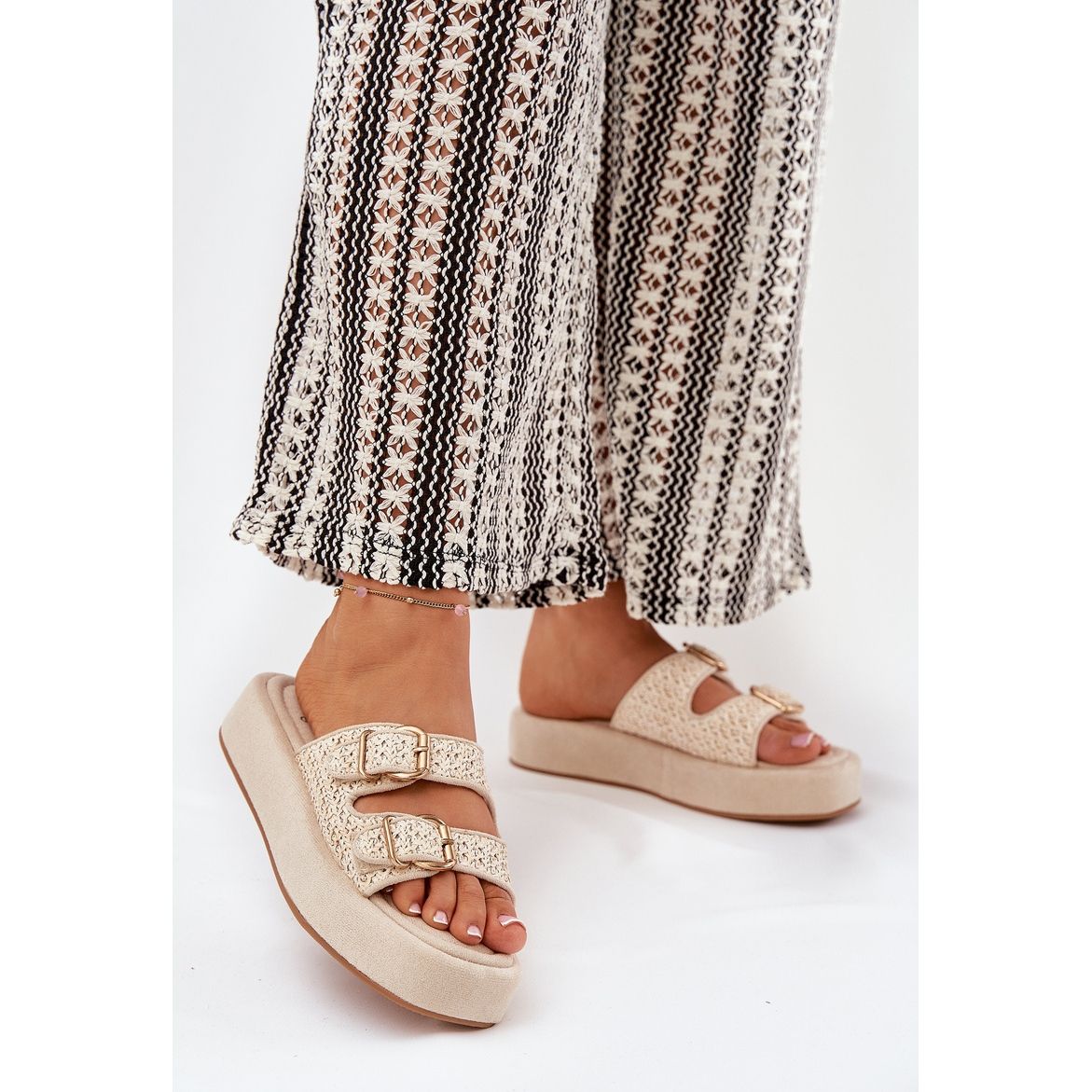 Inna marka Kvinnors flip flops på plattformen med spännen och beige fläta