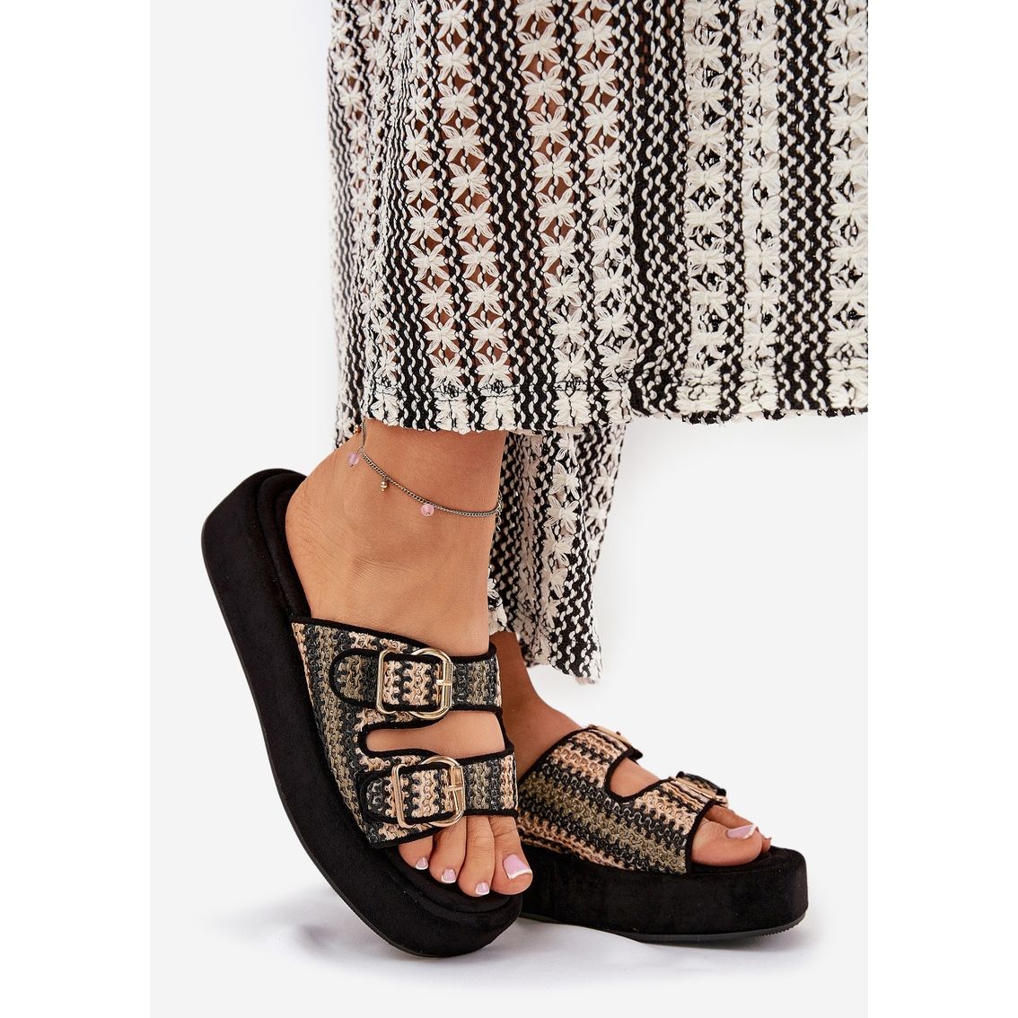 Letar du efter de perfekta sommarflip flops som kommer att kombinera komfort med en trendig stil? Kvinnors flip flops på plattformen med spännen och svart fläta är ett bra val!