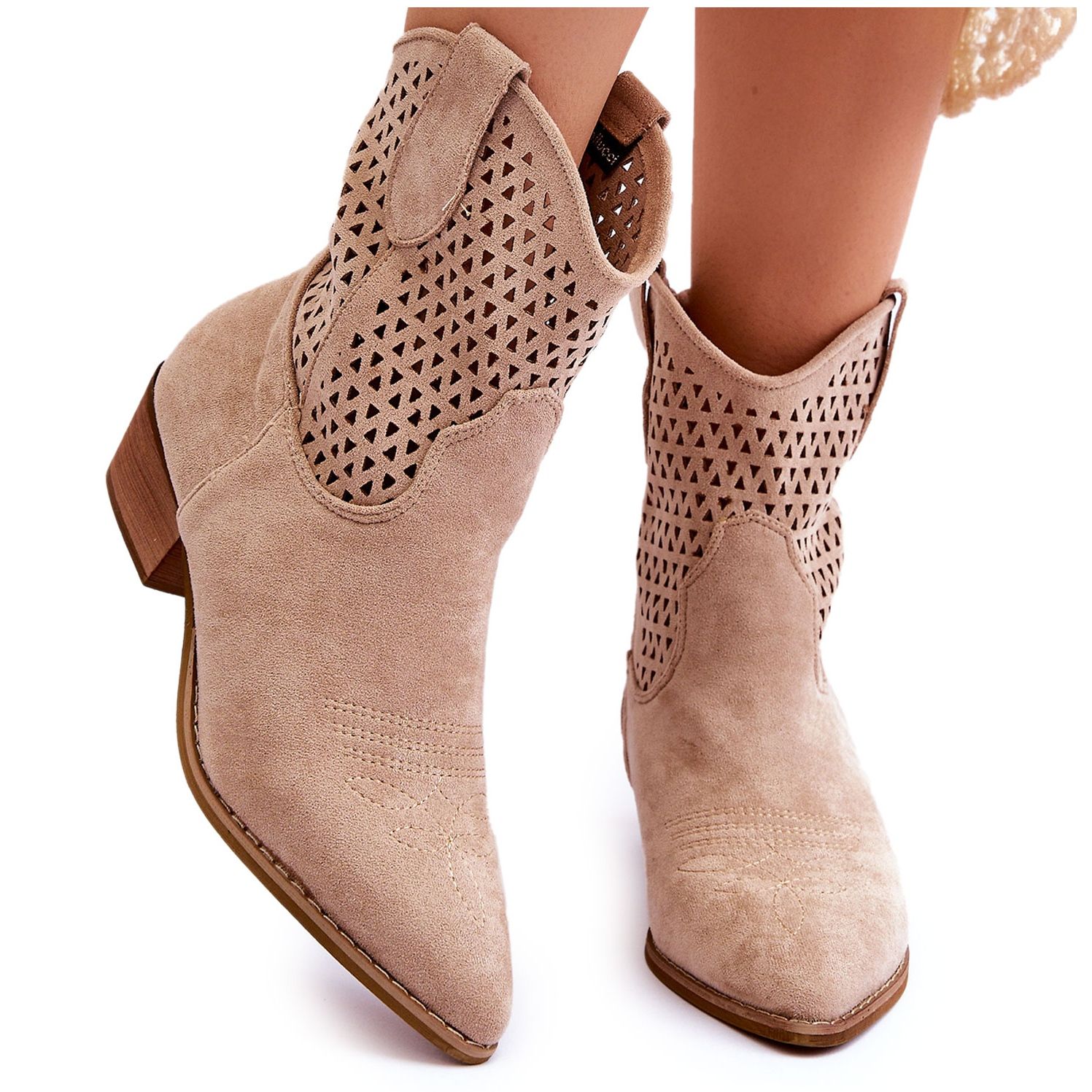 Detaljer: FB1 Kvinnors genombrutna Cowboystövlar Beige Reeds