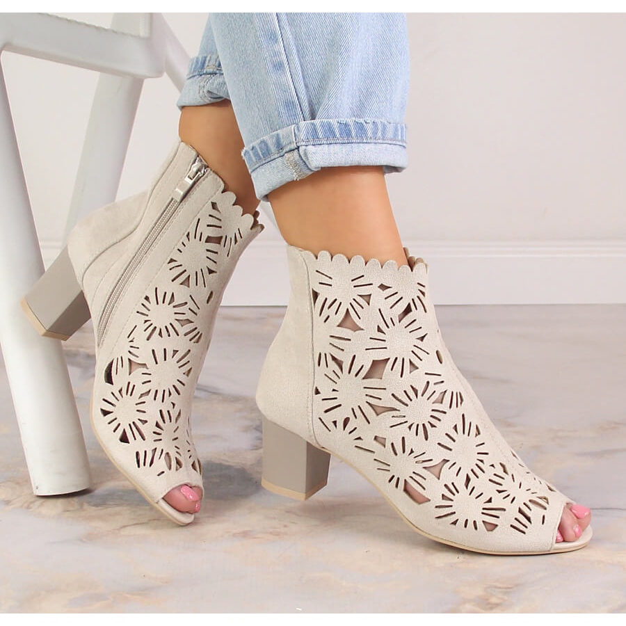Information: M. DASZYŃSKI Kvinnors genombrutna peep toe boots beige M.Daszyński MR1954-10