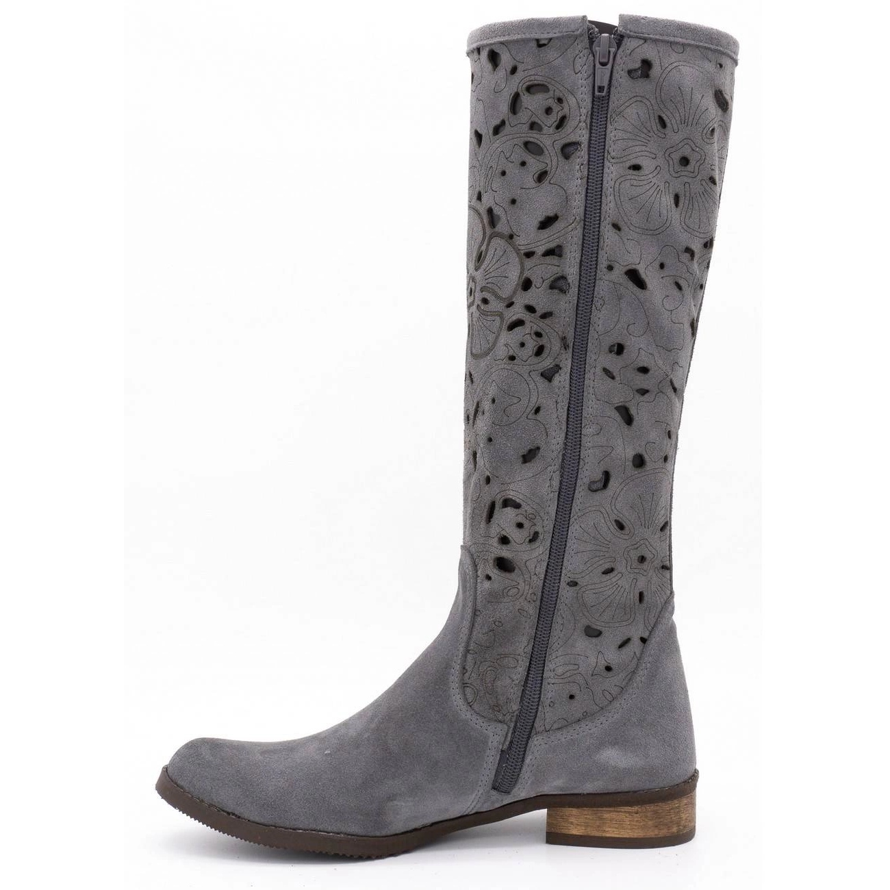 Olivier - Women's Openwork Boots "Flowers" (Dark Grey)